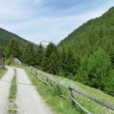 In Laudes (Laatsch), we walk up the forested trail marked 10B, leading us the way up to 1,260 m a.s.l., where the Stundenweg (Hours' Trail) starts, the course of which we follow towards north. Short after an ascent follows, the route branches to the left into the Valle di Slingia valley.