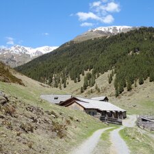 In summer the farm is also a little rest point for hikers. Here, the Silandro Valley presents itself as a gentle high valley with meadows and alpine pastures at more than 2,000 m a.s.l. For our way back we take the same route. An alternative would be to take the forest path downhill until the former "Mühlgütl" and from there to walk along the Val Venosta High Route back to Talaccio.