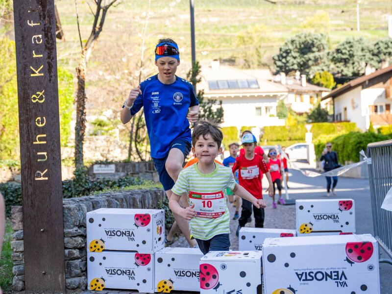 as a vertical run directly to the mountain station of the Unterstell Cable Car (the day before) - VIP Apple Kids Run (700 metres or 1,400 metres)