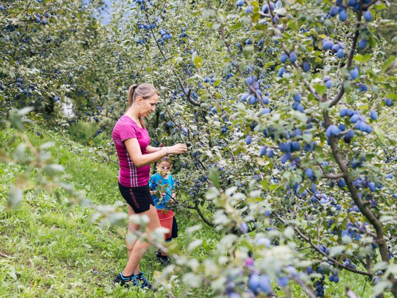 In addition, there are guided plum excursions through the surrounding nature and, to conclude, the traditional Barbiano Plum Festival at the festival ground in Barbiano. There you will find plenty of delicacies made from and with the blue fruit, accompanied by live music. Barbiano even has its own Barbiano Plum Trail, which you can walk all year round, but which is naturally particularly impressive in early spring during the plum blossom and in autumn at harvest time.