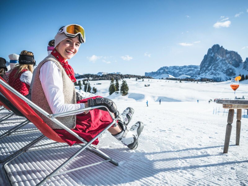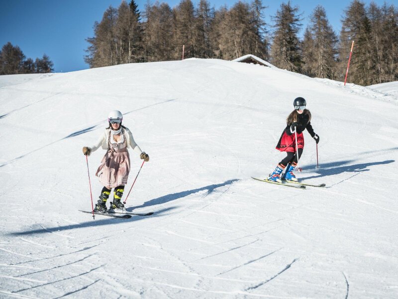 The competition takes place on the Alpe di Siusi at the Sanon Hut, one of the most famous mountain huts there. Now in its fourth edition, the event begins in the morning with an aperitif and snacks. This is followed by an easy parallel slalom featuring a dice game at the finish area, accompanied by a DJ set. The winners are honoured in the afternoon. Participation is open exclusively to women in teams of two aged between 18 and 99 (for a fee).