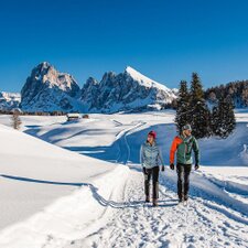 The longest descent is the Pilat run. The most challenging pistes are called Bullaccia Race, Bullaccia Freccia and Pilat Direttissima. Families and beginners will also find plenty to enjoy on the high-alpine pasture: The Alpe di Siusi Ski School offers group lessons for the little "Mini Sammys" from three years old. Snowboarders can look forward to South Tyrol's largest snow park with the longest medium line in Europe. A special highlight is the Wood Line with its wooden obstacles.