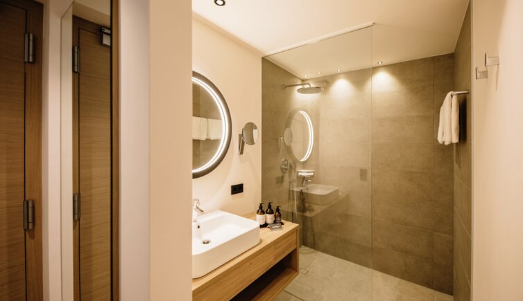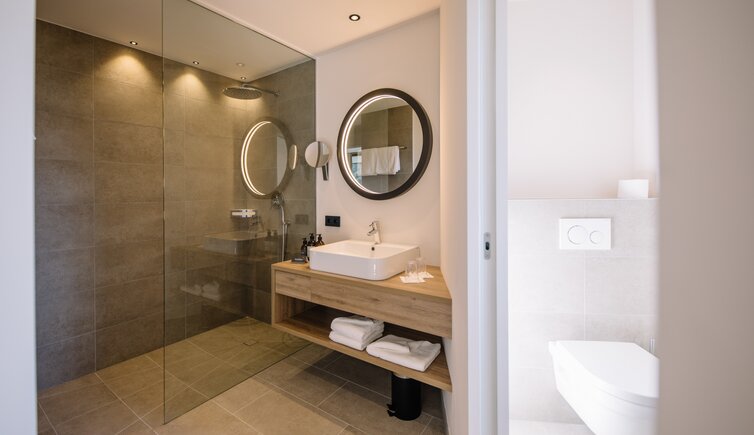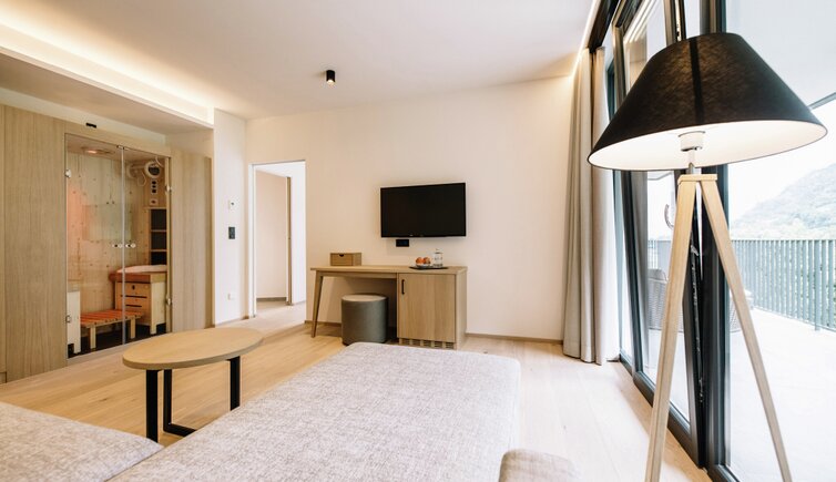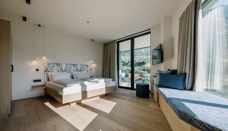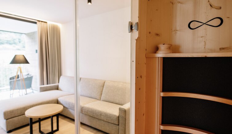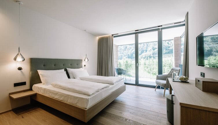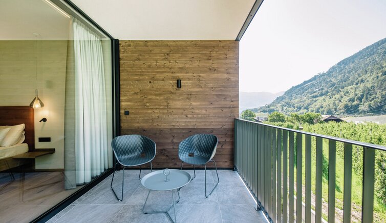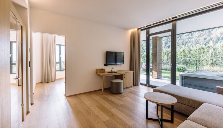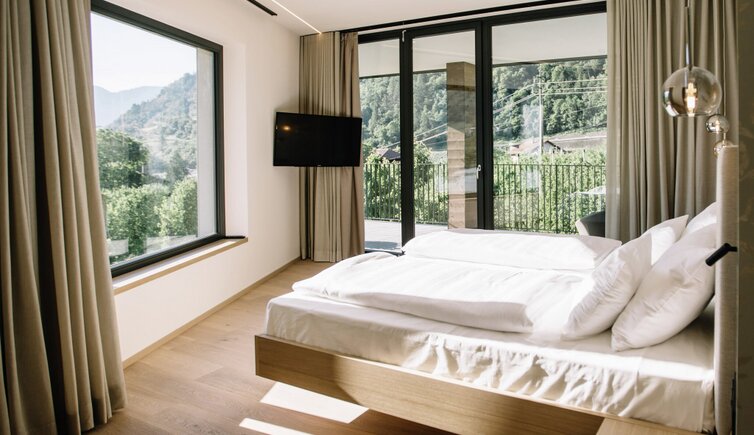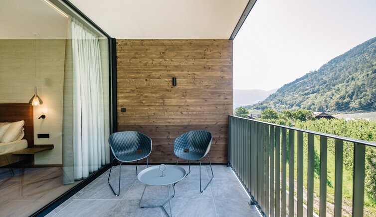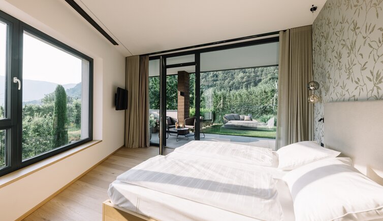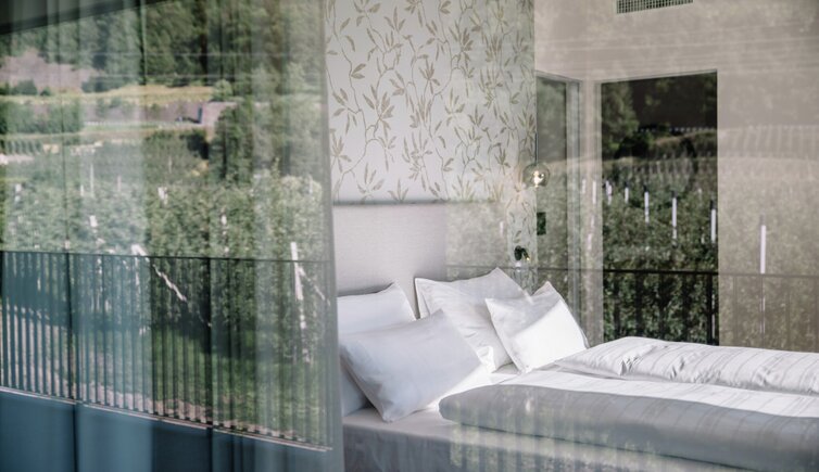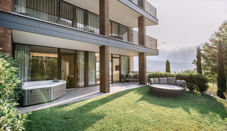 And outside, surrounded by the green of the apple orchards and the forest, every corner tells a story: of Lagundo and Merano, of the mountains and the valley, of the garden and its pool.