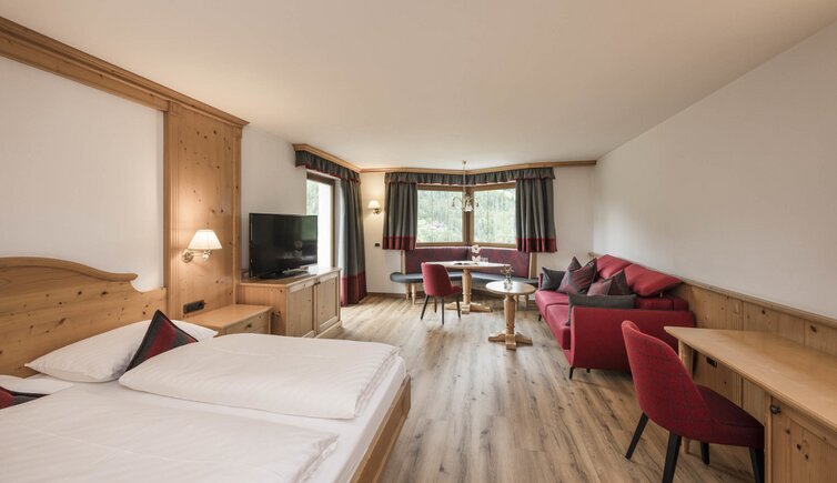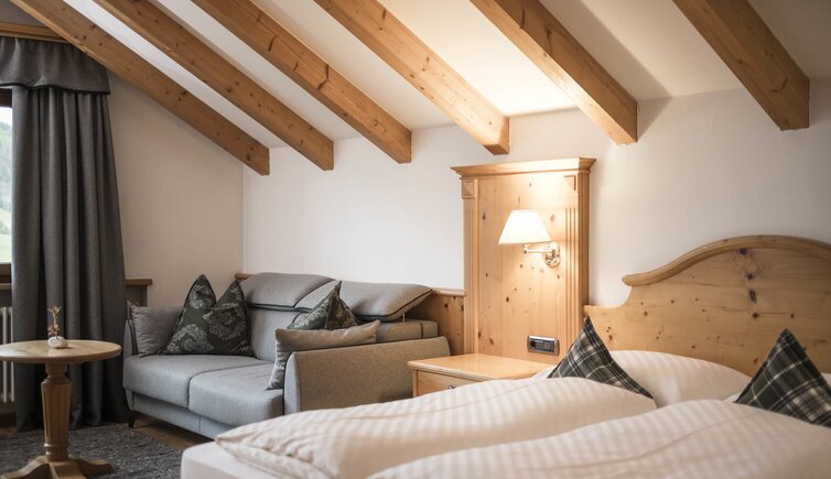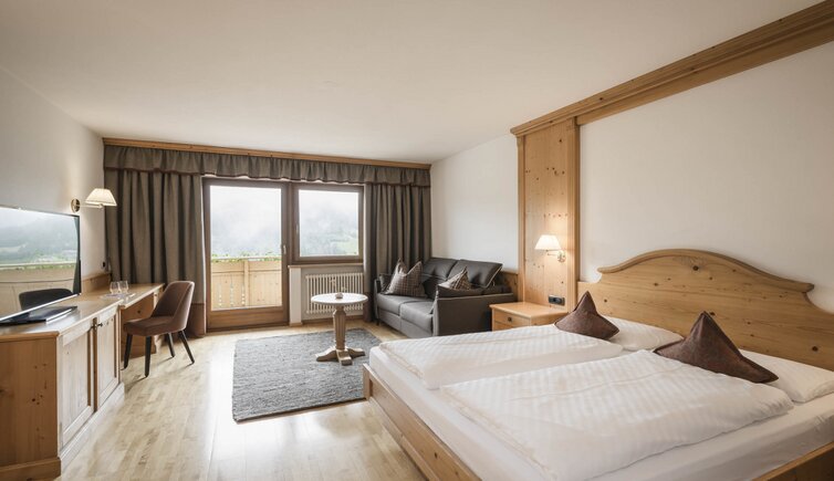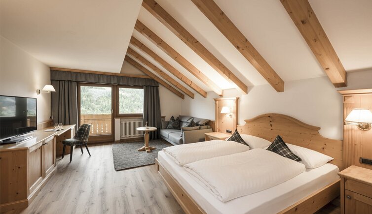 The cosy and spacious rooms and suites are a true retreat. They are furnished in a classic alpine style and the view on the surrounding mountains is breathtaking.