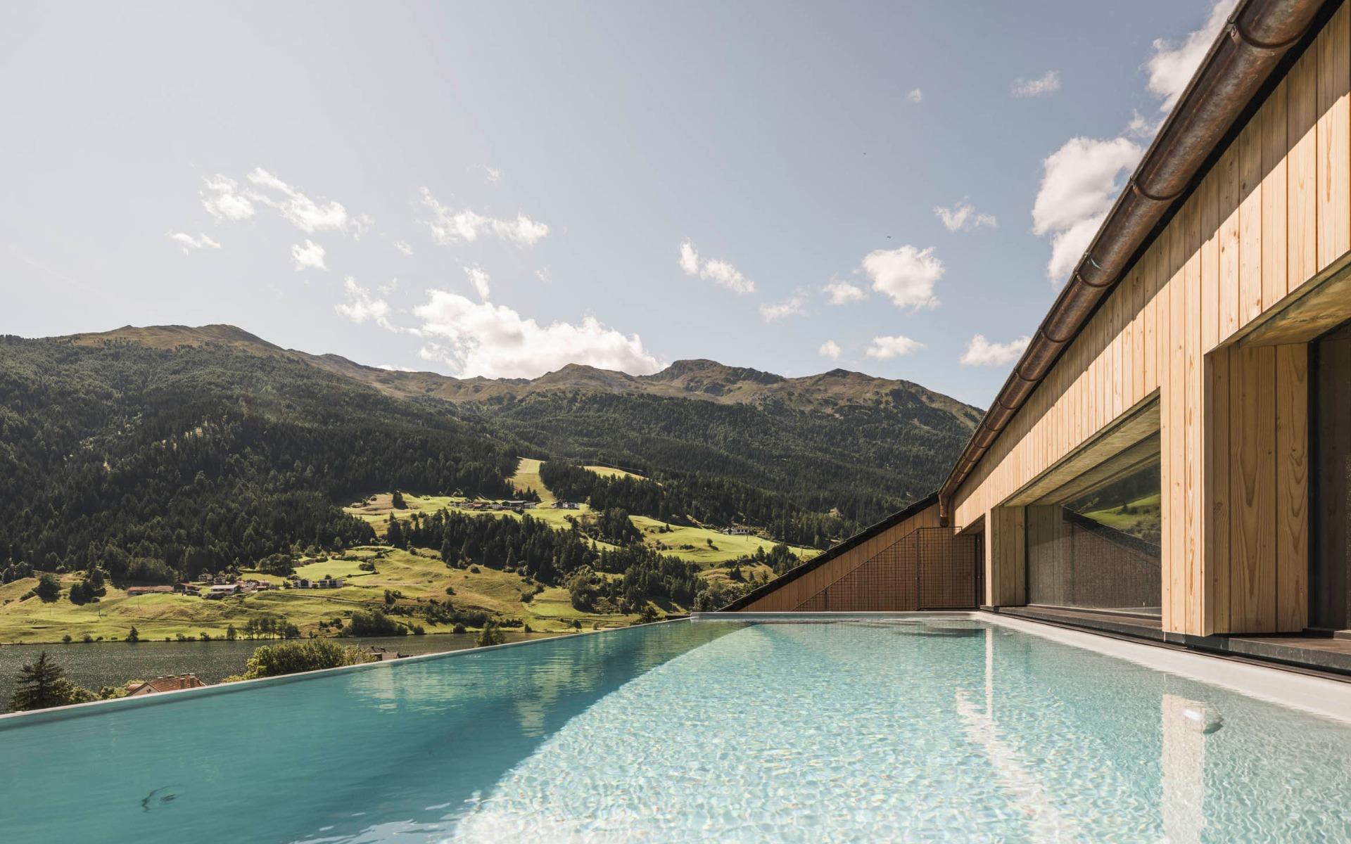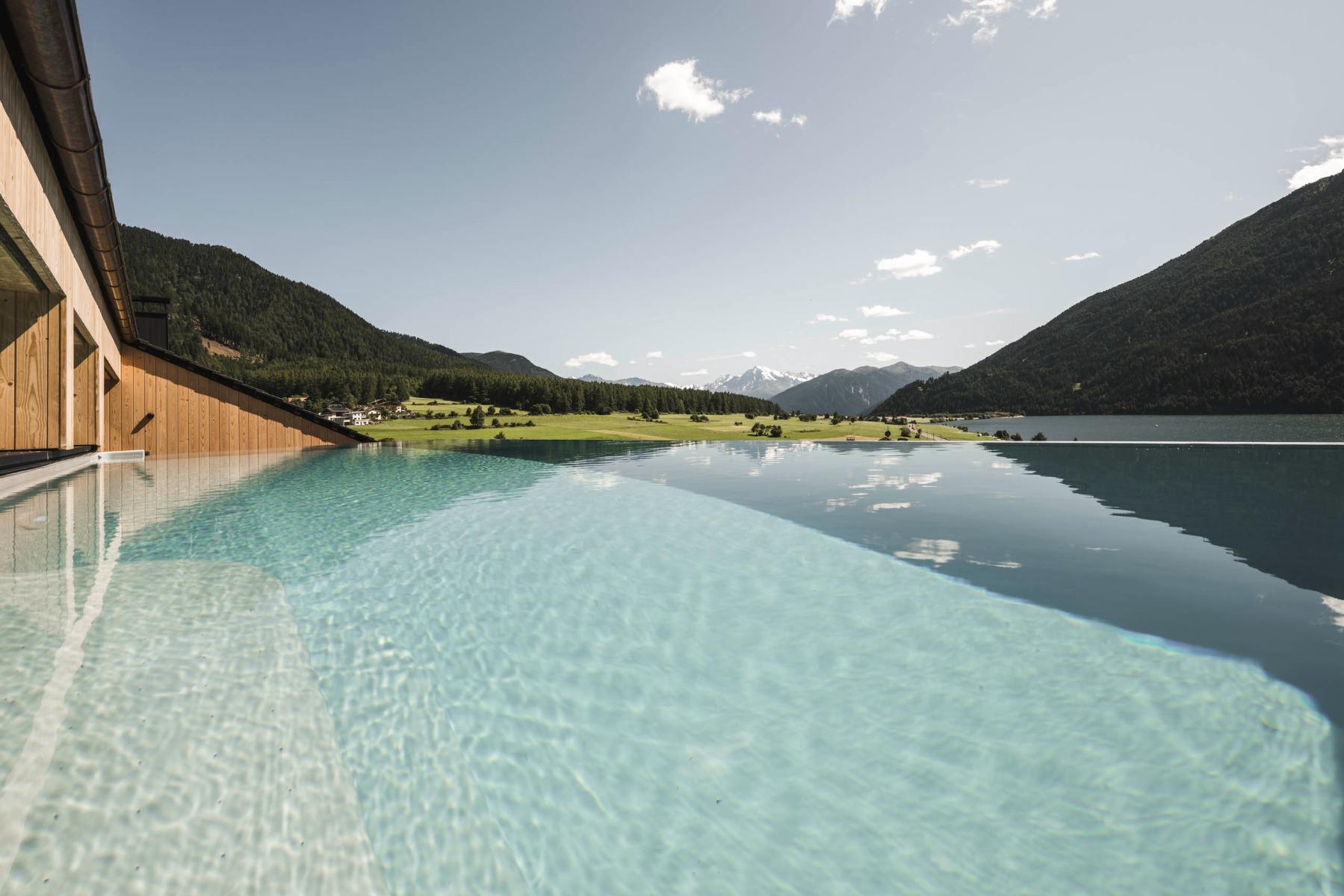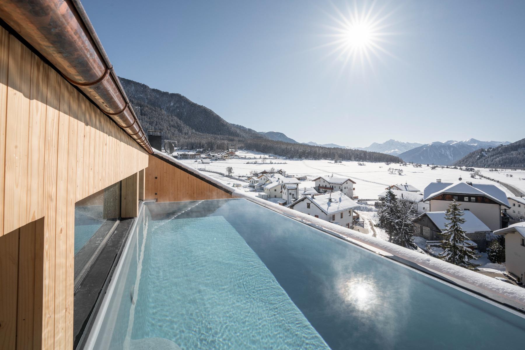 In the Sky Wellness area, the sky seems within your reach, the panorama sauna impresses with 360° views on the Val Venosta mountain massif, the Ortles and Lake San Valentino.