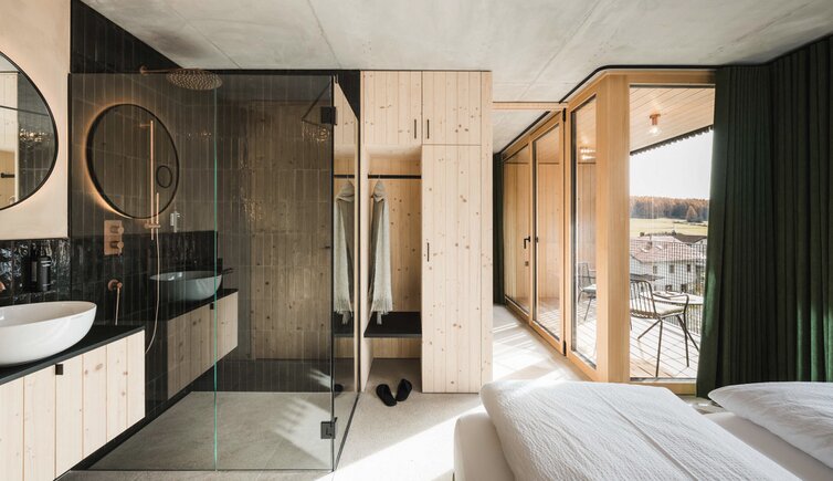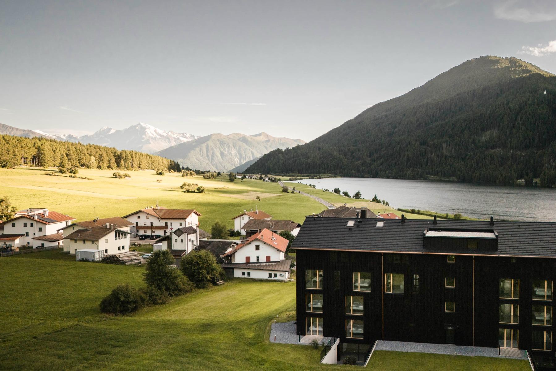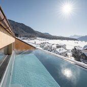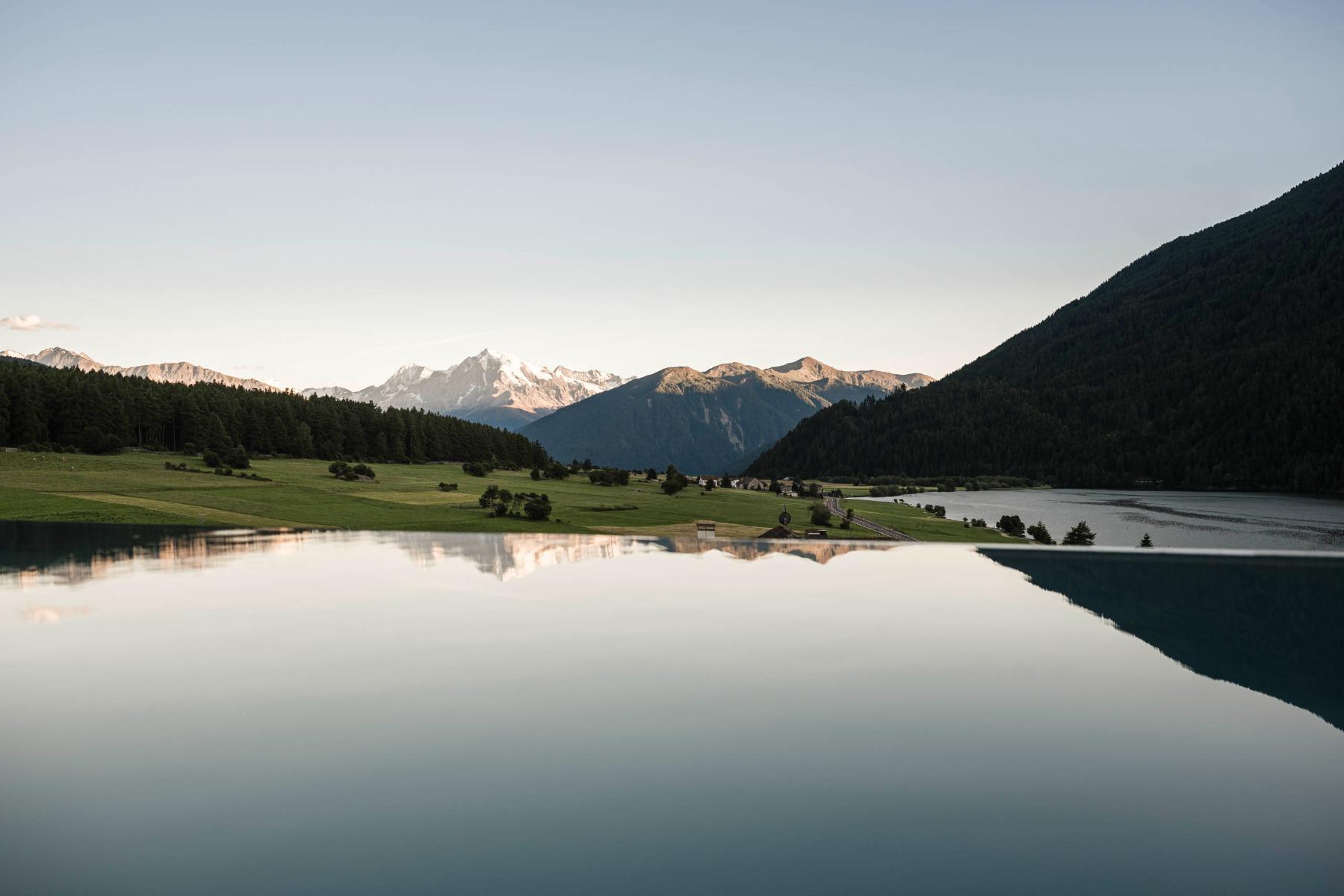 In the Sky Wellness area, the sky seems within your reach, the panorama sauna impresses with 360° views on the Val Venosta mountain massif, the Ortles and Lake San Valentino.
