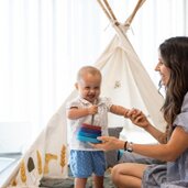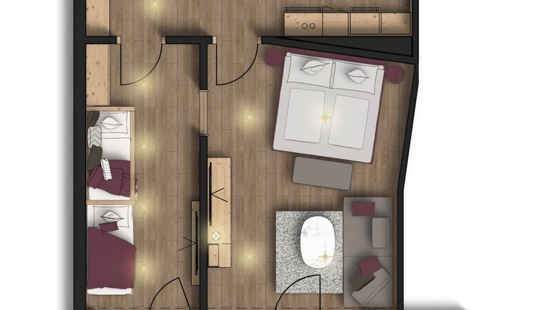 The spacious family suites and studios are furnished with regional, natural and sustainable materials.