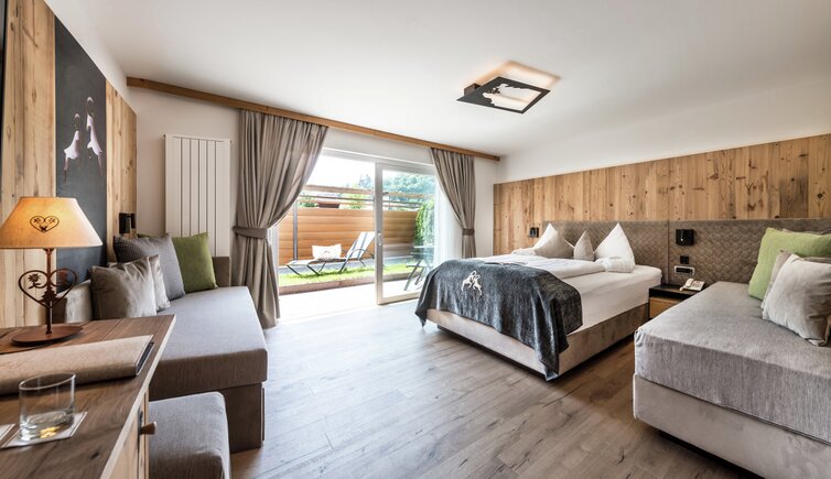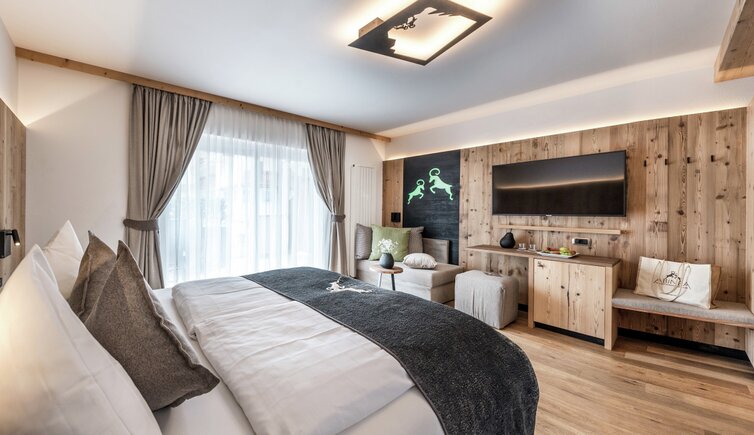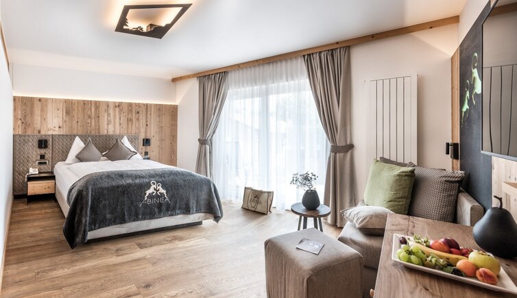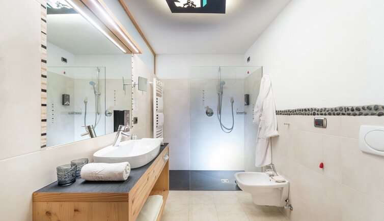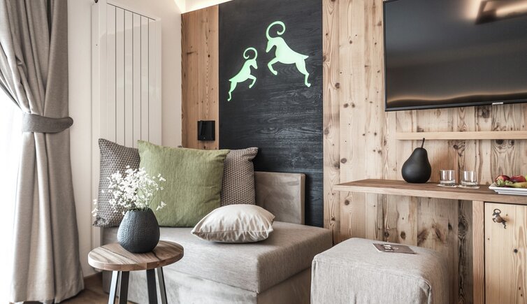 Relax on the roof terrace with sun loungers, in the heated whirlpool, the outdoor sauna or the Sky Pool – a 20-metre heated outdoor pool with an integrated whirlpool. While doing so, you can admire magnificent views of Castelrotto and the surrounding mountains.