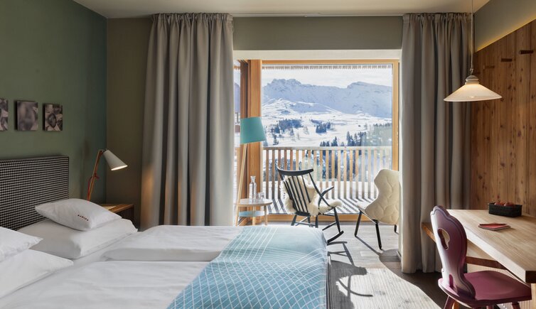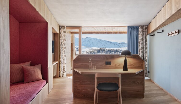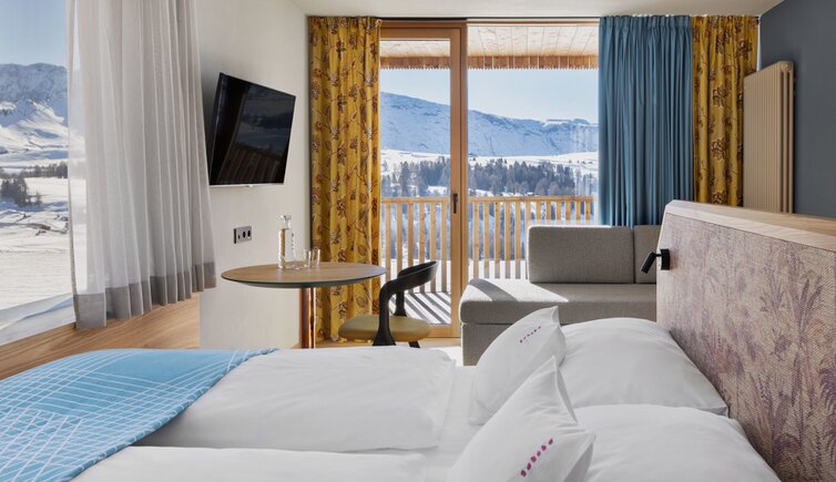 Rooms, pool, SPA, restaurant, bar and terrace are generously distributed over three levels and become part of the Alpe di Siusi through intelligently conceived niches and perspectives. Curious travellers and day guests on the pursuit of joie de vivre and inspiration will love the ICARO.