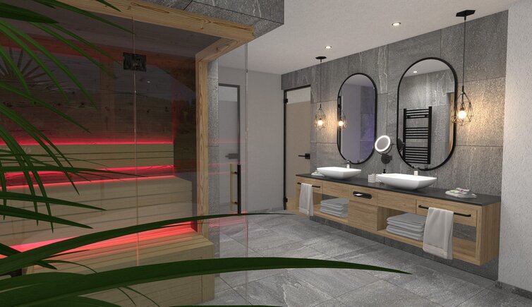 The "Frëina" wellness area, with indoor and outdoor pool, panorama pool, Finnish sauna and steam bath, spacious relaxation rooms as well as care and massage treatments, offers relaxation for body, mind and soul.