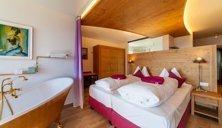 For all those seeking relaxation, there is an outdoor bio sauna and barrel sauna, a whirlpool and an outdoor swimming pool.