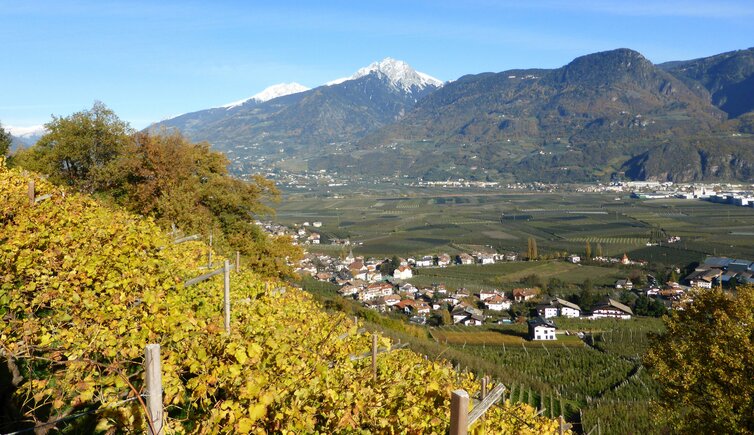 The hill, however, was settled much earlier: Wall structures found at Monteleone date back at least to the Roman Imperial era. Other sights include the Parish Church of St. Sebastian and the small St. Anna Church. Also worth visiting is the Kränzel Winery with its seven gardens, including a labyrinth and the Garden of Trust. Merano is only five kilometres away.