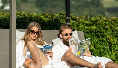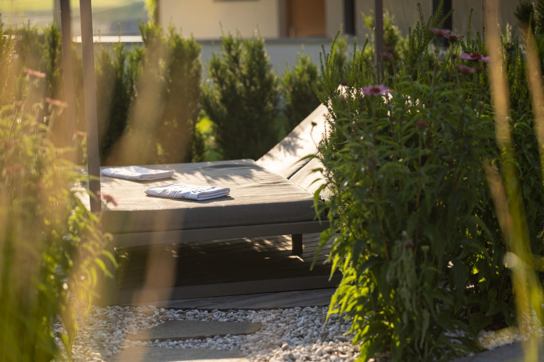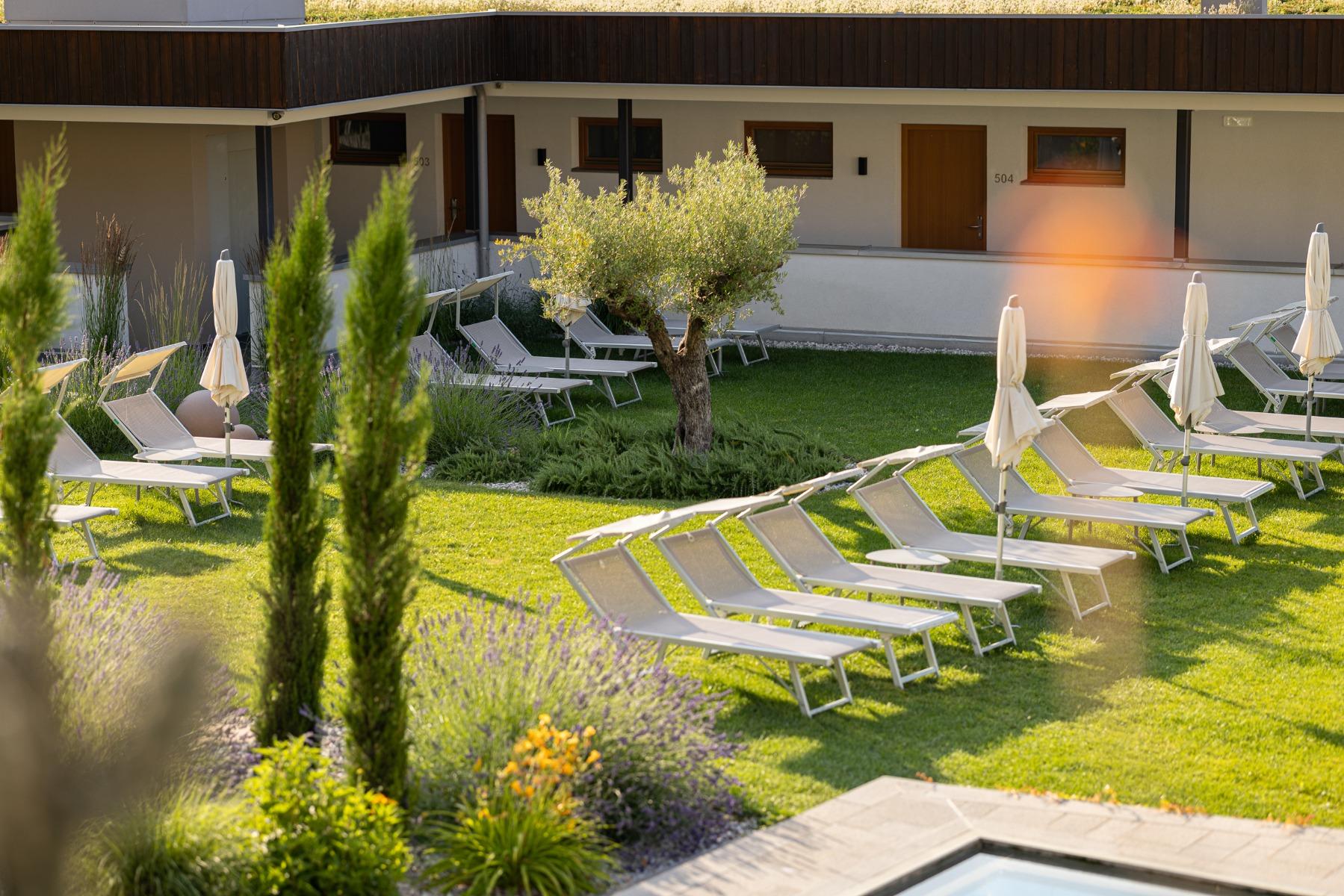 The sunny sunbathing lawn and the outdoor pool with panoramic whirlpool provide a break from everyday life for couples and families.