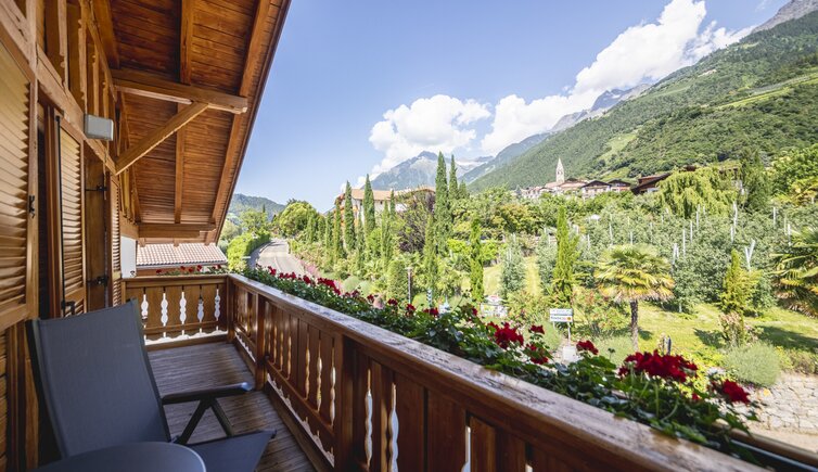 A small refuge in the midst of orchards and vineyards and a panoramic view of the Merano valley basin, which can be enjoyed from the sun-drenched loggias.