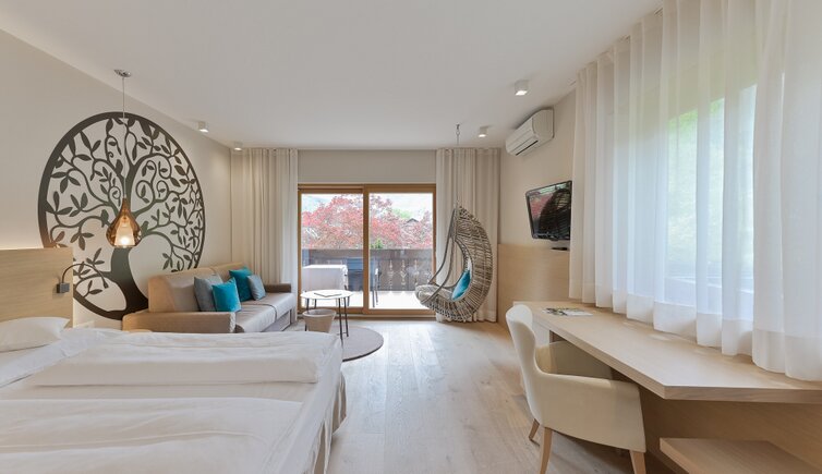 From the heated outdoor swimming pool to the indoor pool, saunas, roof terrace and fitness room, to the idyllic private walking path leading you into the orchards: at the hotel you will find everything to help you have fun and do good to your health.