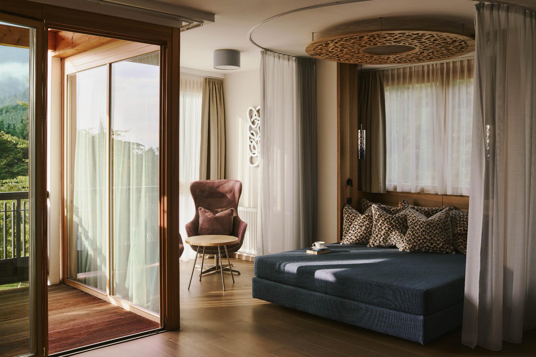 Because everything is lightness, is flowing, is now. The Alpiana – green luxury Dolce Vita Hotel gently nestles into the landscape of orchards and green meadows, chestnut groves and mountain forests.