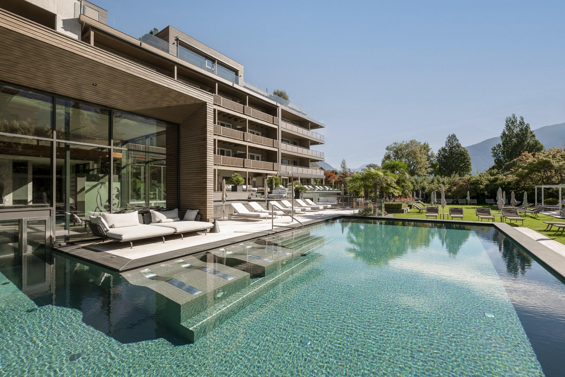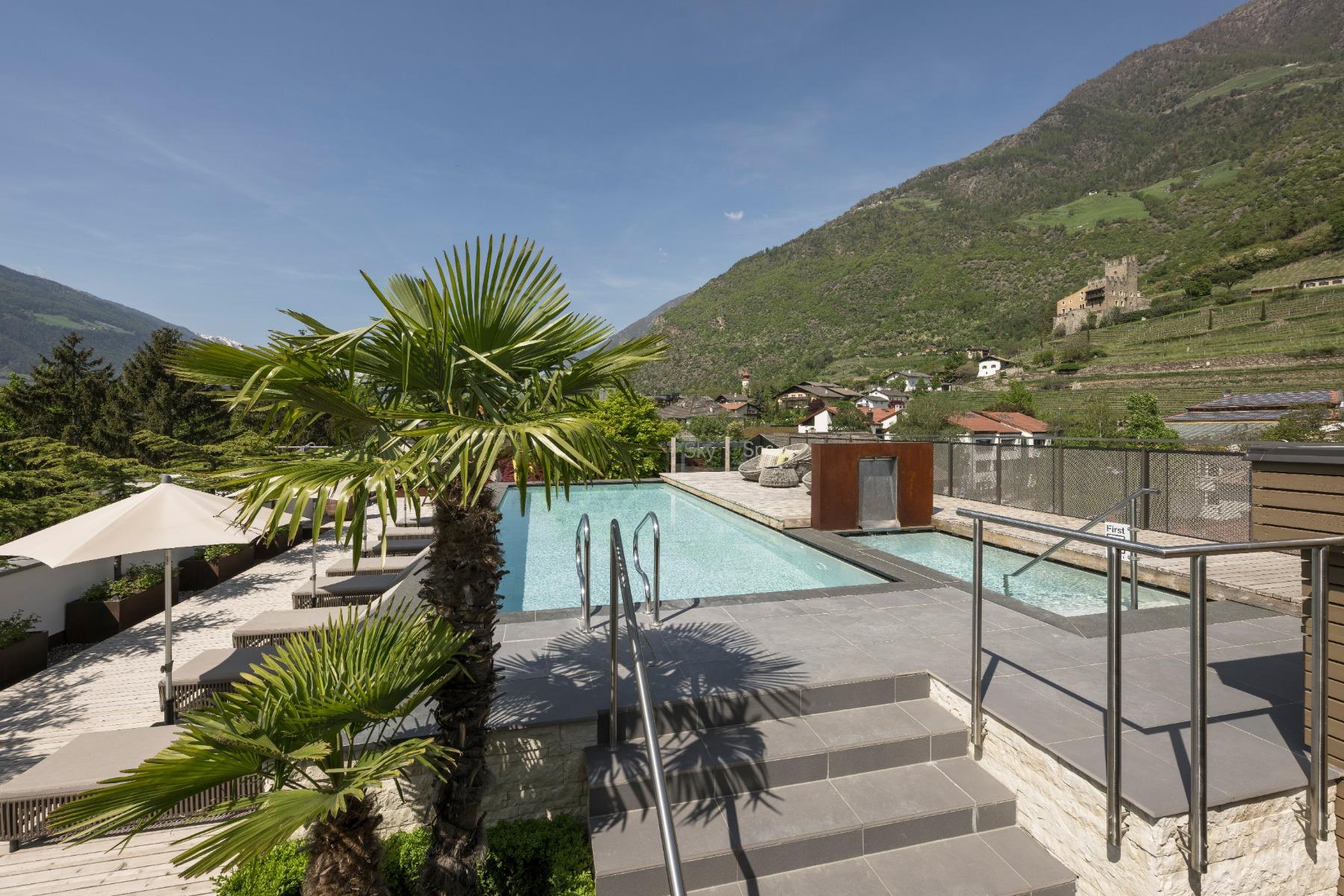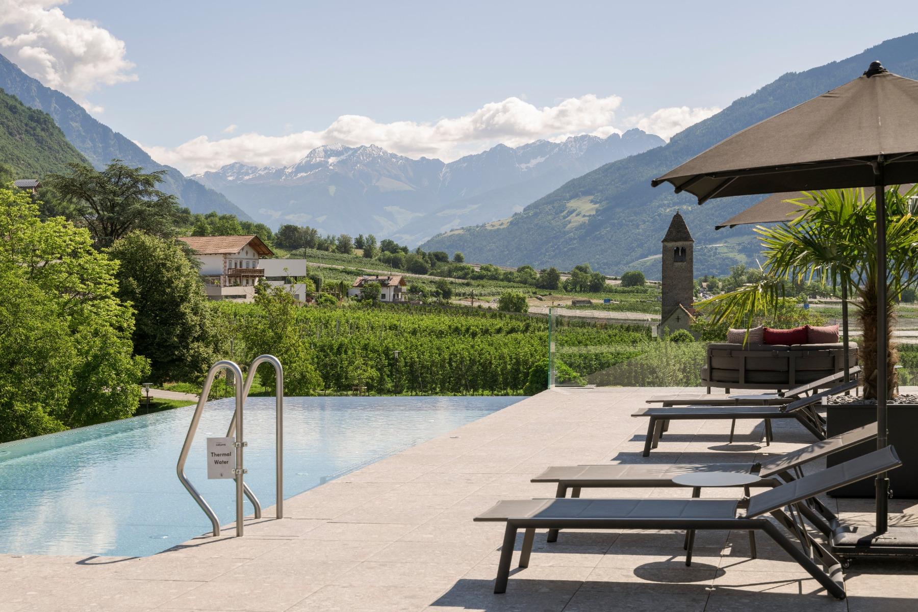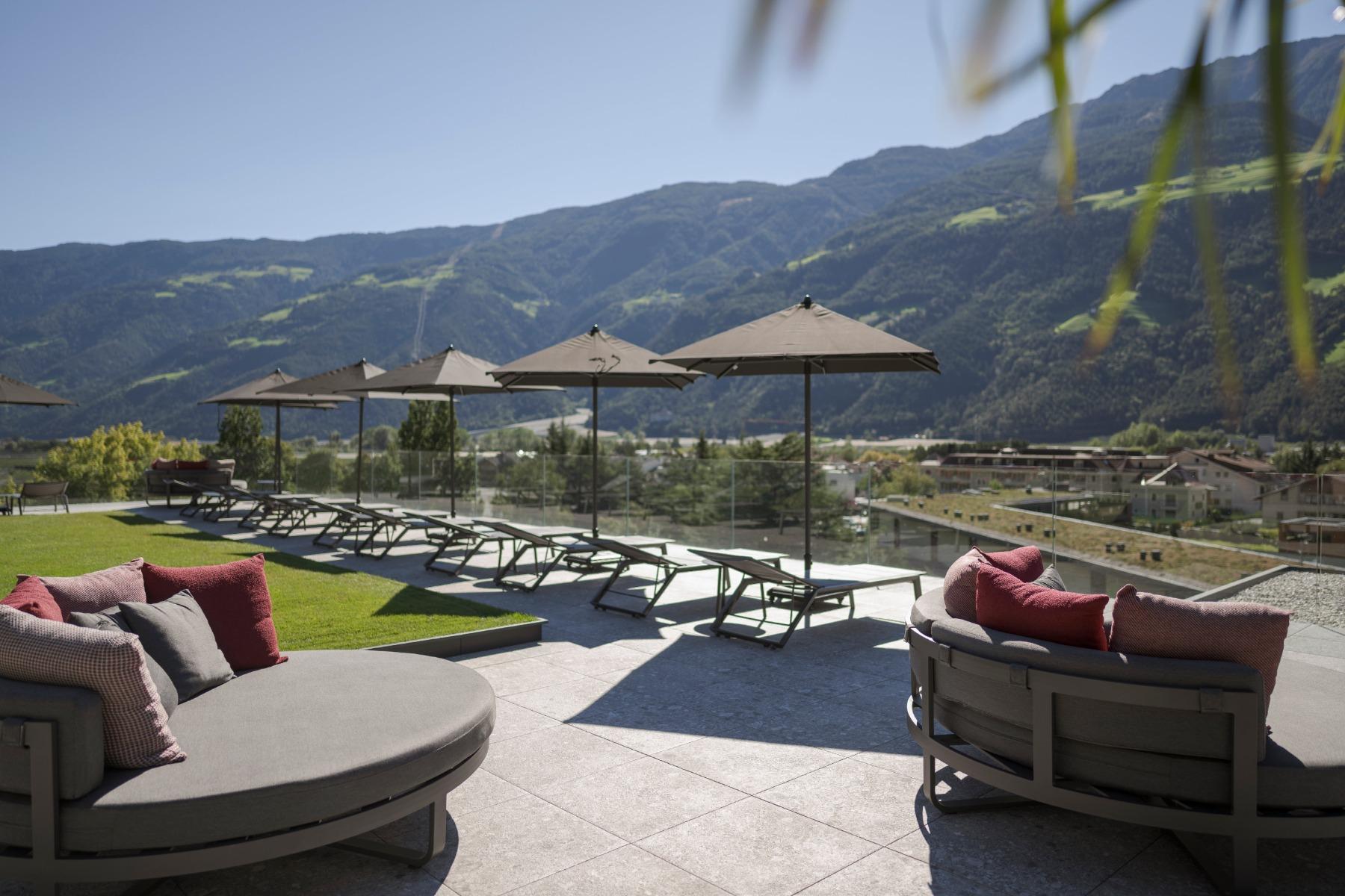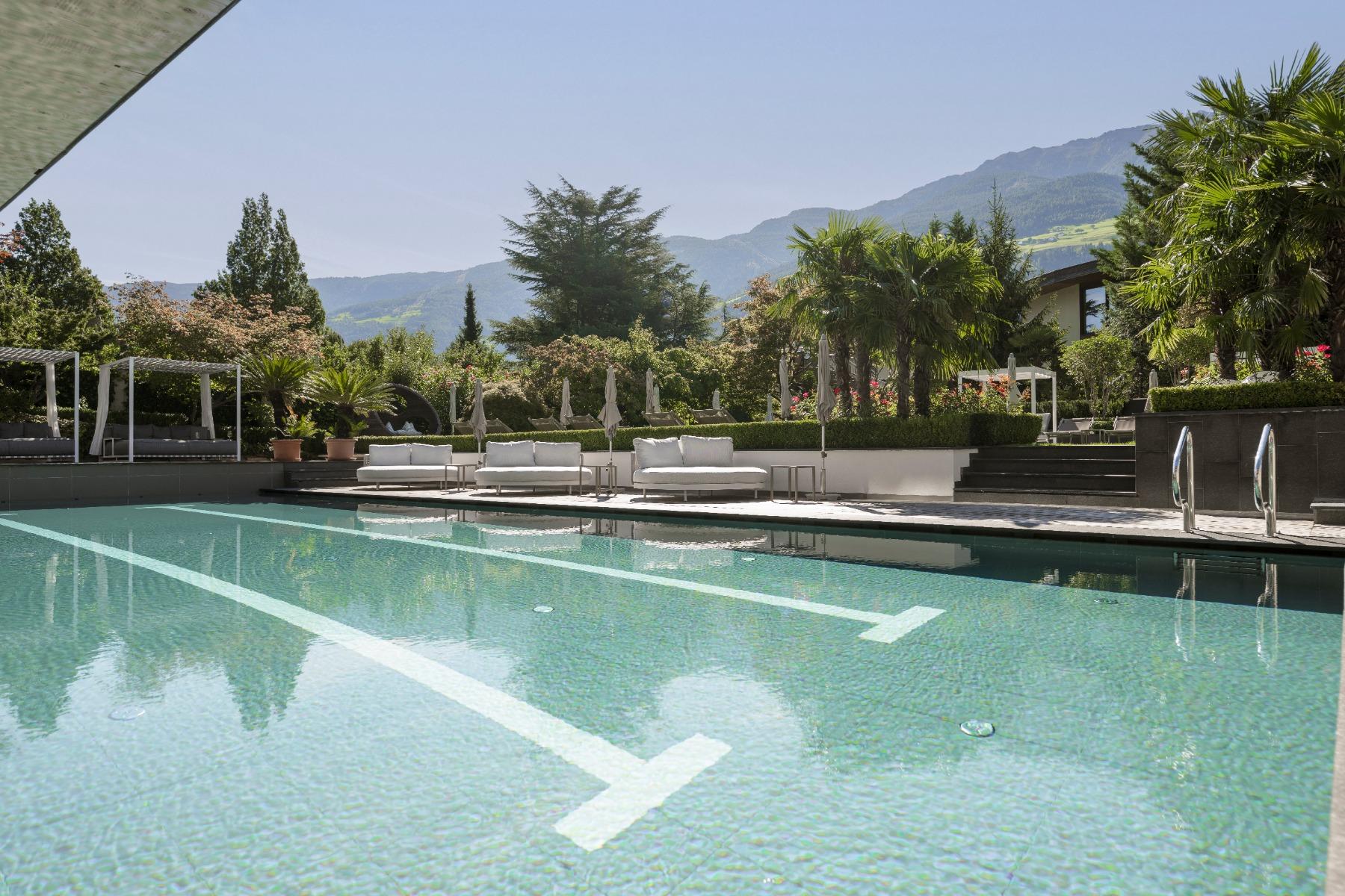 You can expect 10 heated pools with over 550 m² of water surface, 5,000 m² Mediterranean garden with palm, lemon and olive trees, modern spa area with spacious treatment rooms, 2,000 m² Sky-Spa (adults-only), spread over 2 floors with 360° panoramic view of the South Tyrolean mountains, Family-Spa with children’s indoor adventure pool and whirlpool, 7 saunas, 6 relaxation rooms, 3 large panoramic terraces with cosy loungers and much more.