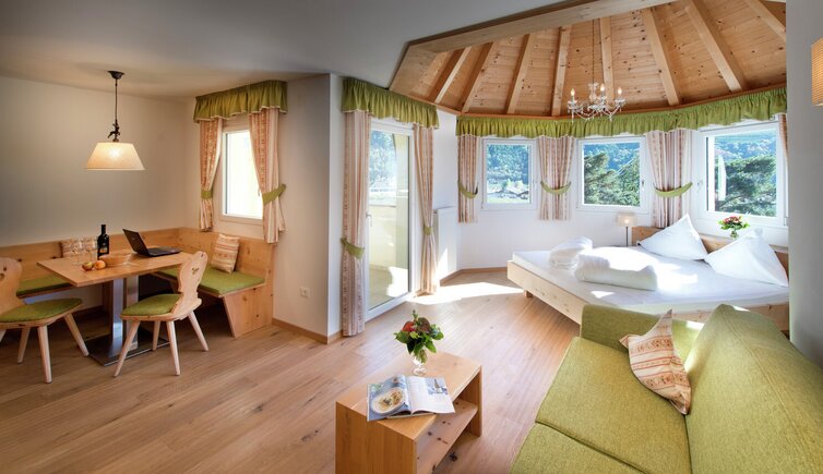 Those who prefer a quieter time can relax in the wellness area and on the panoramic meadow.
