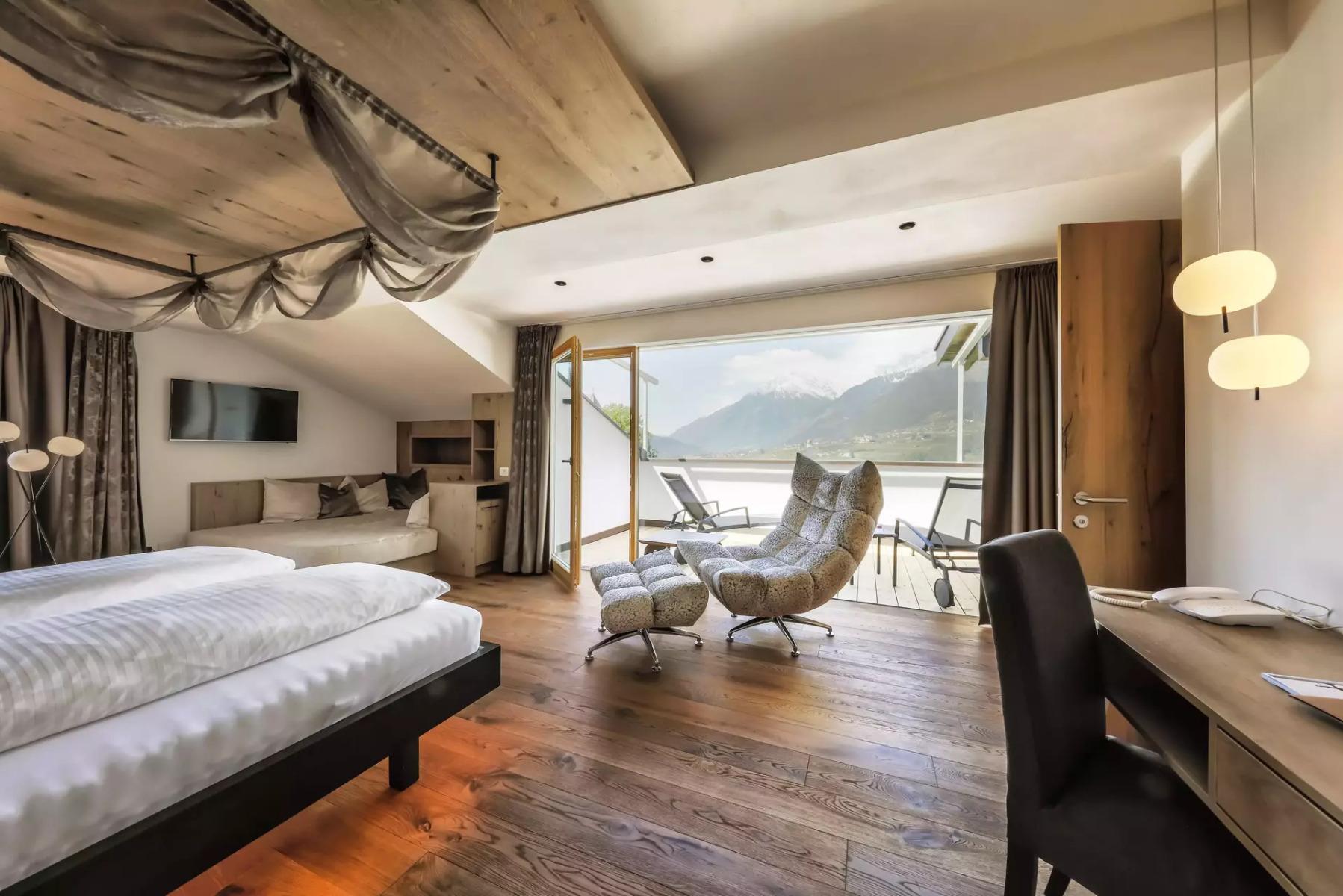 From your room, you can enjoy breathtaking views of the Texel mountain range and, on clear autumn days, the snow-capped peaks of the Ortler massif.
