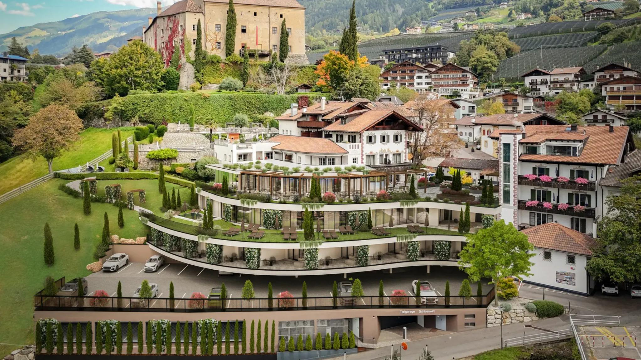 Hotel Schlosswirt is located in the heart of the historic village center of Schenna. In a privileged position, directly below the imposing walls of Schenna Castle, guests enjoy an unparalleled panoramic view over the Meraner Land stretching far into the Vinschgau Valley.