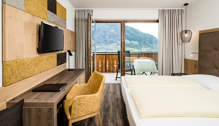 • Use of our panorama living room on the 3rd floor with sauna, steam room, jacuzzi and relaxation areas with a view of the Merano valley basin and the surrounding mountain scenery