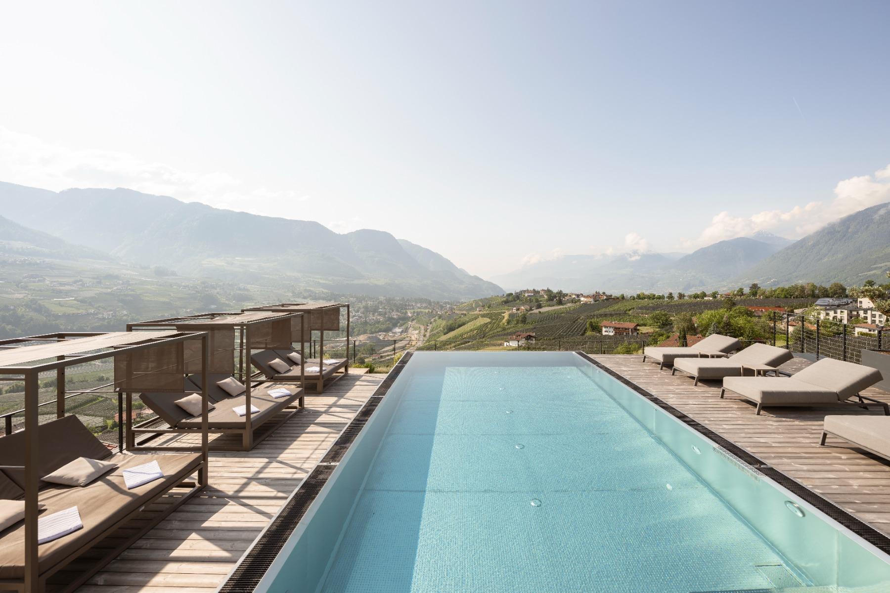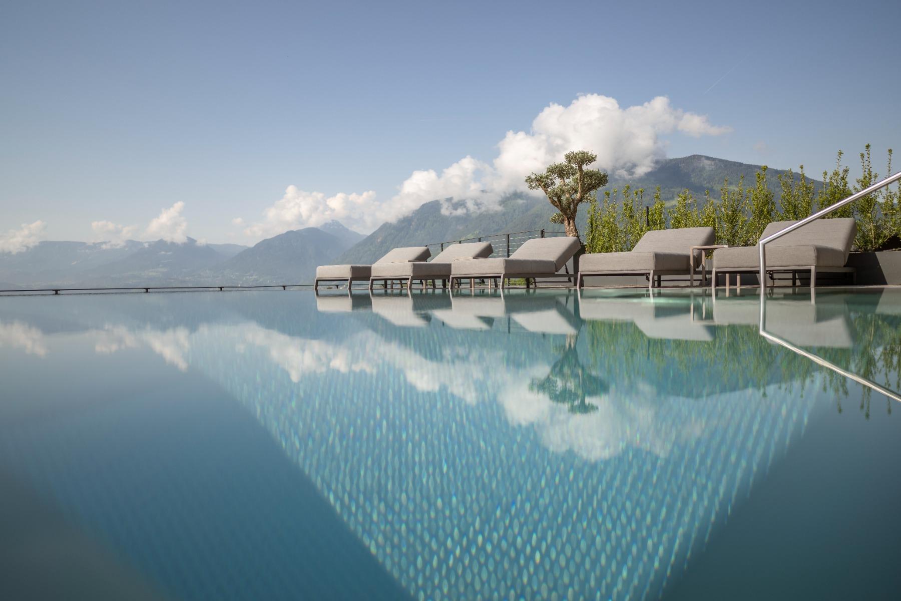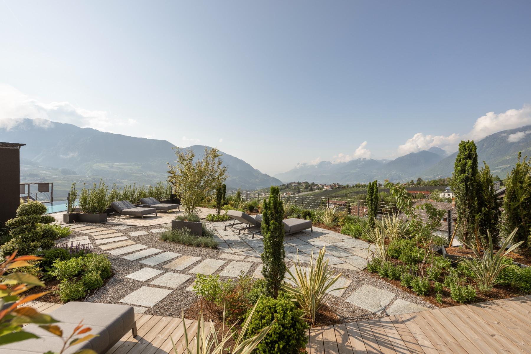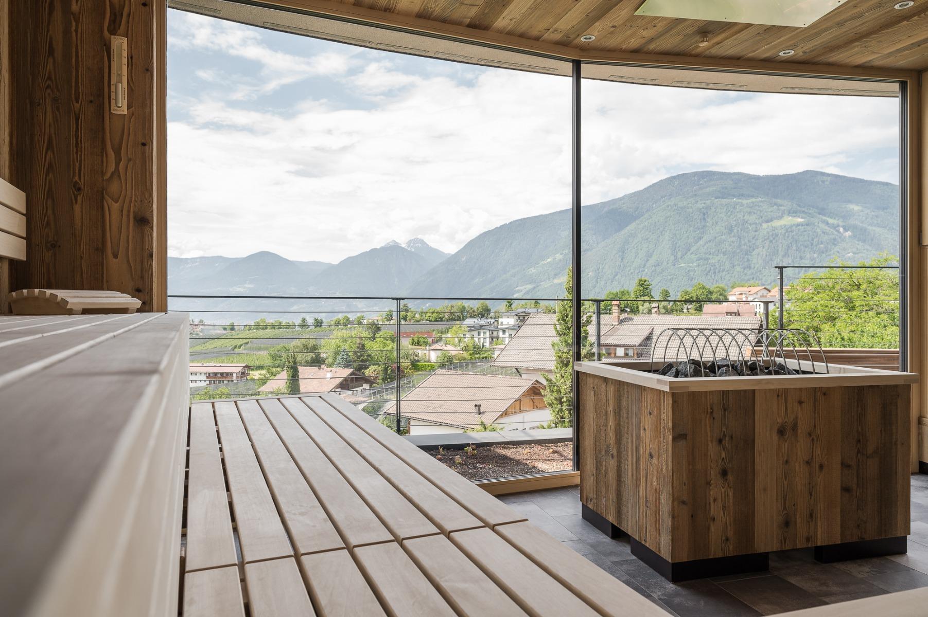 The panoramic location offers guests a magnificent panoramic view on the charming spa town of Merano, the Tessa Group and the surrounding valleys and mountains.