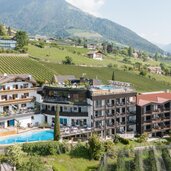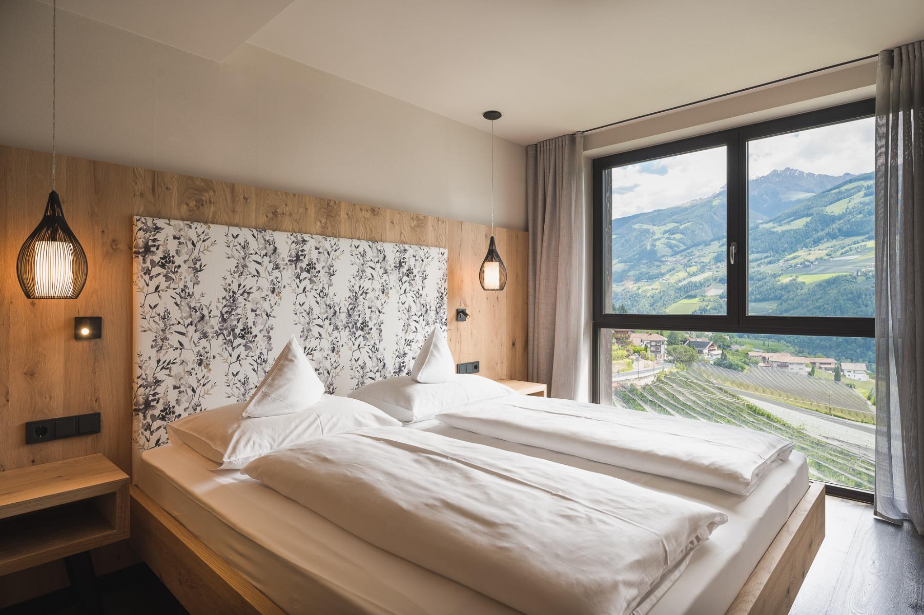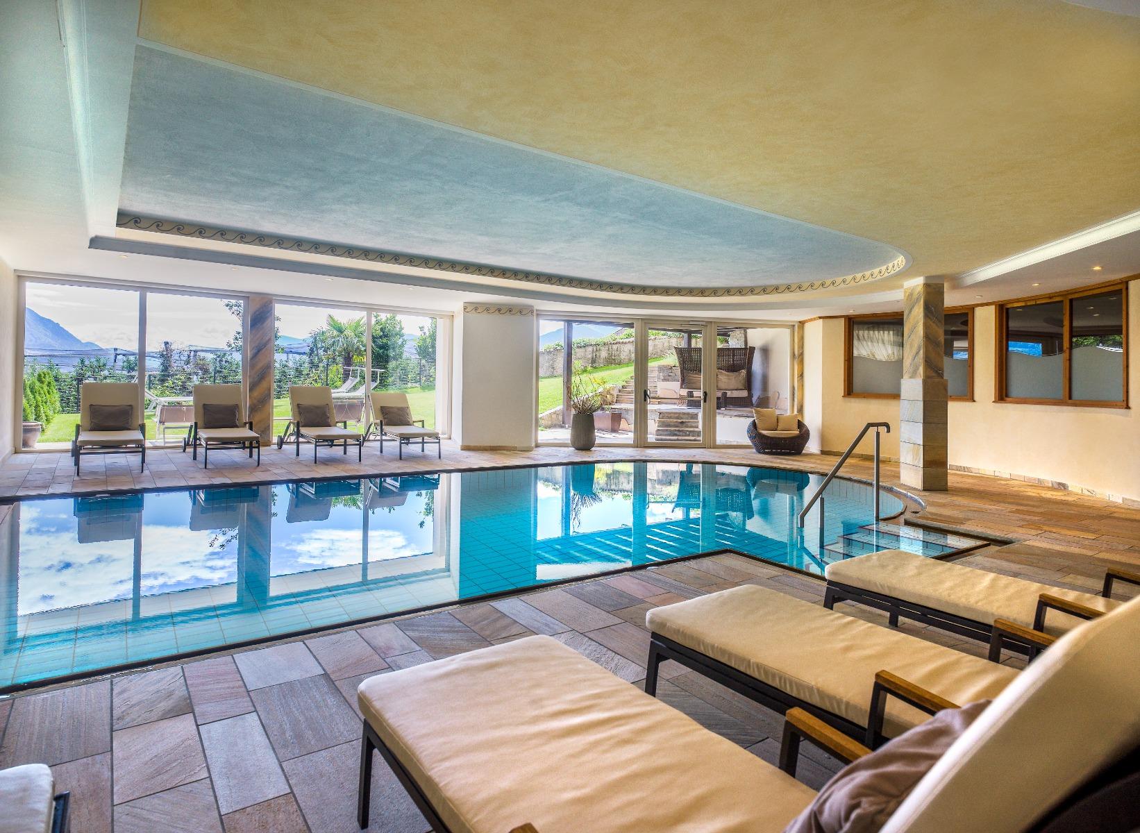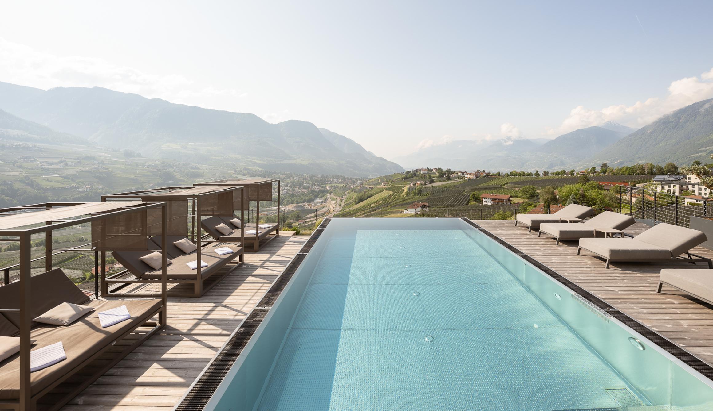 The panoramic location offers guests a magnificent panoramic view on the charming spa town of Merano, the Tessa Group and the surrounding valleys and mountains.