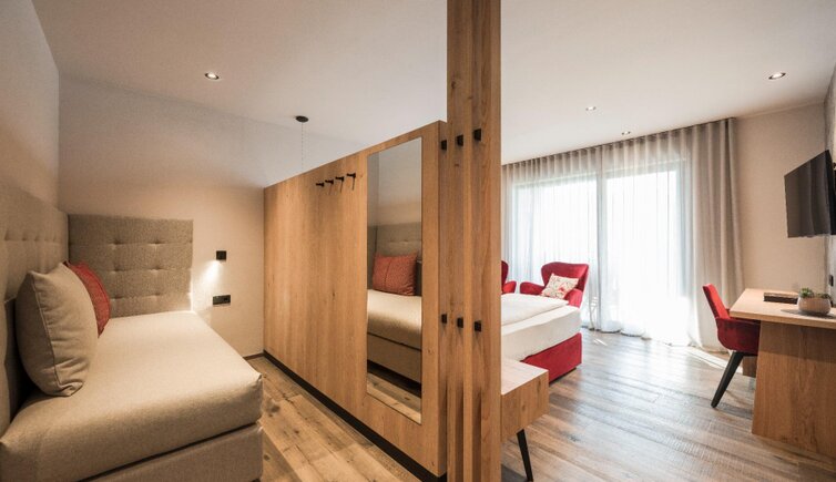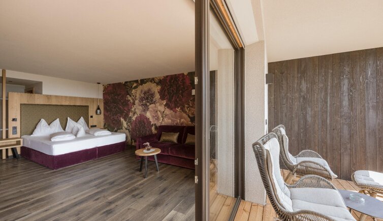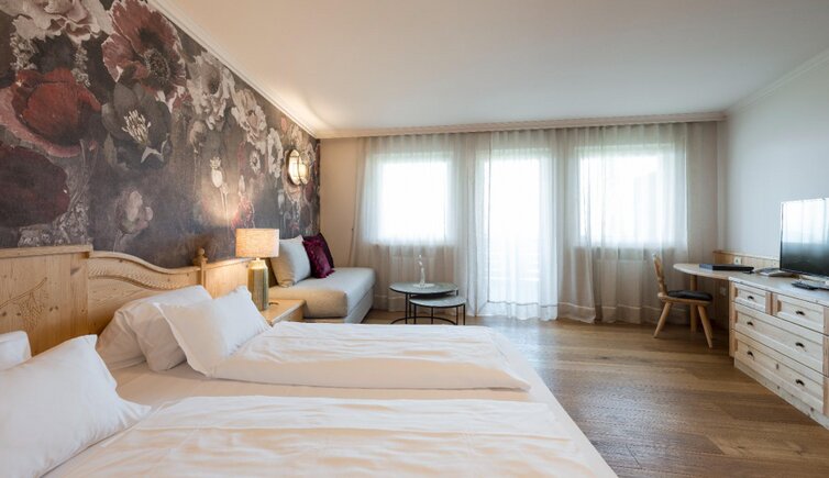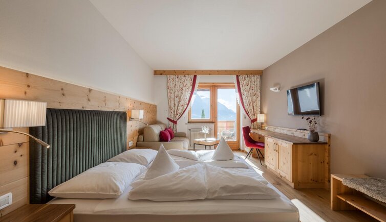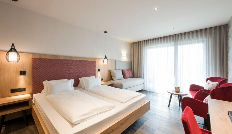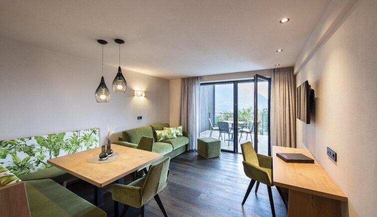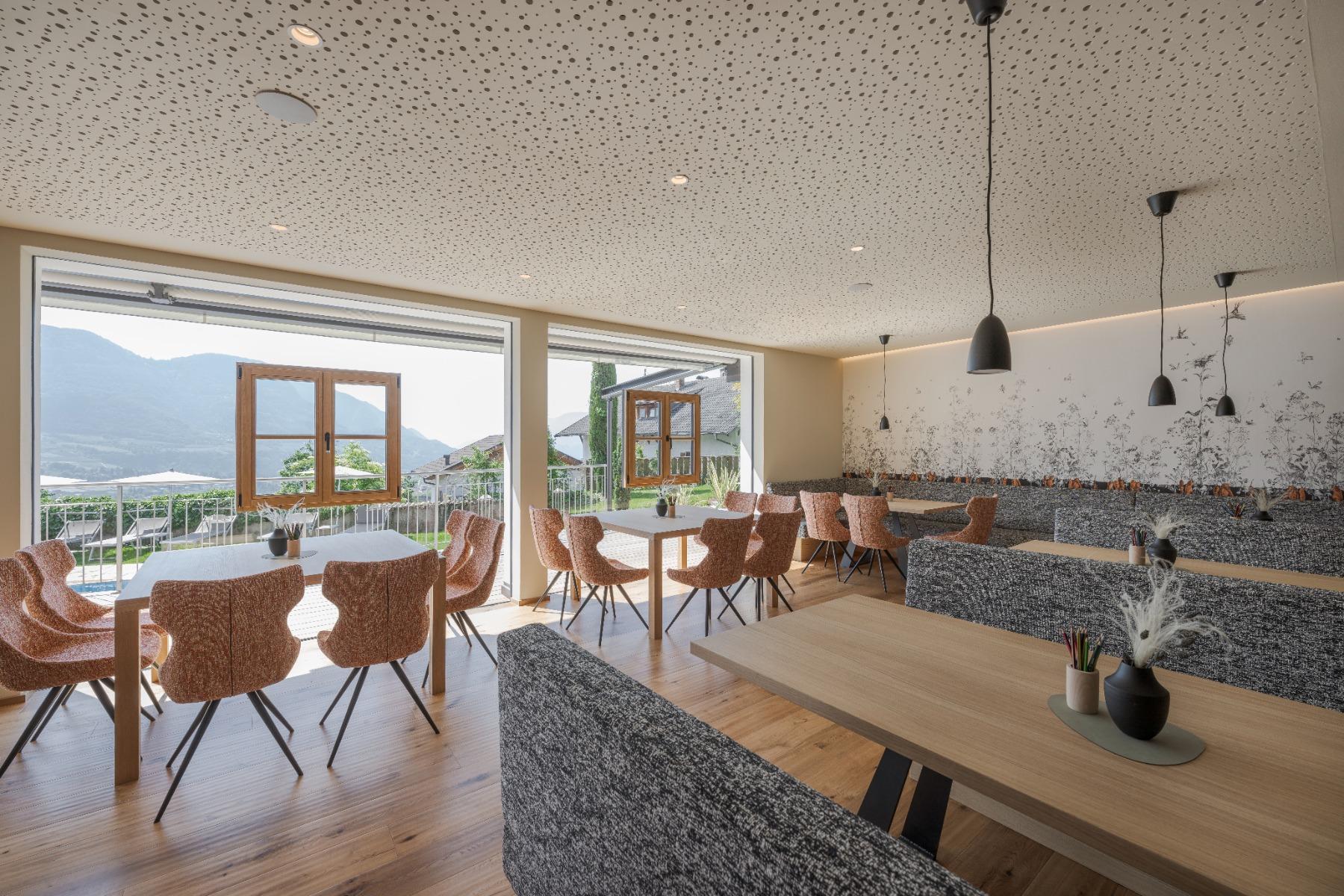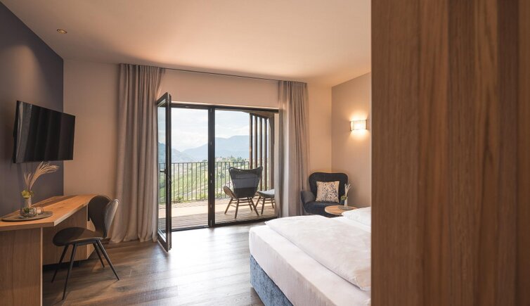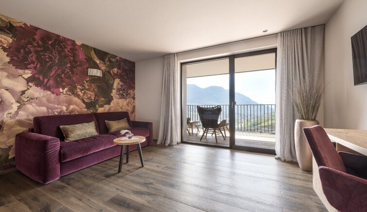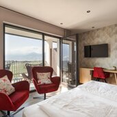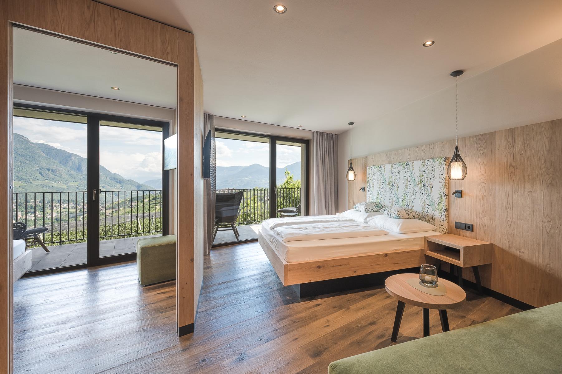 The panoramic location offers guests a magnificent panoramic view on the charming spa town of Merano, the Tessa Group and the surrounding valleys and mountains.