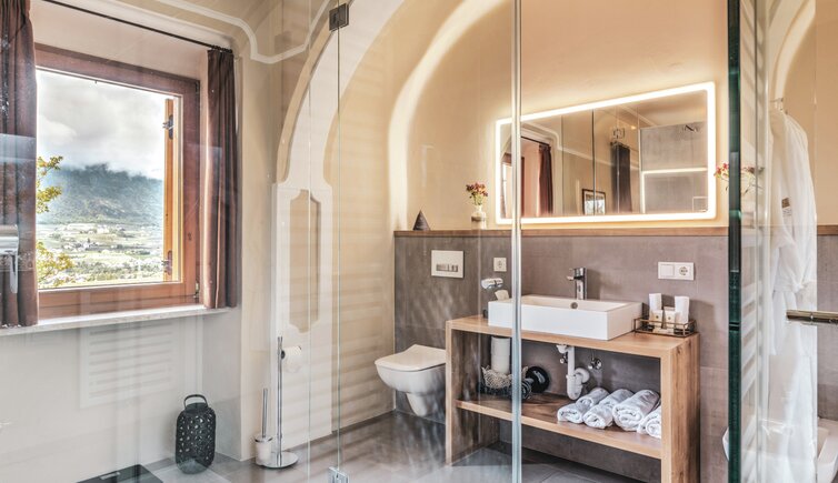 A noble residence surrounded by vineyards, with a gorgeous view across the entire Val d’Adige valley and the protective woods of Monticolo at the back.
