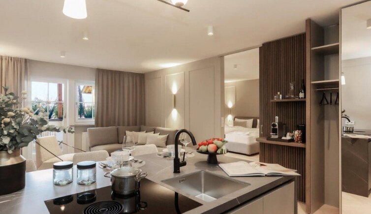 The 16 suites and flats offer a unique, stylish ambience and are furnished with great attention to detail. The view from the window offers a fascinating panorama on the South Tyrolean mountain world and the surrounding Mediterranean landscape.