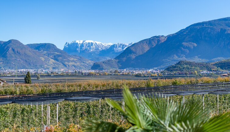 The location offers a wonderful view over large parts of the Adige Valley, the Boymont castle ruins, the Korb and Hocheppan castles, the Monte Macaion (Gantkofel), Castel Firmiano (Sigmundskron) and over the city of Bolzano to the Sciliar.