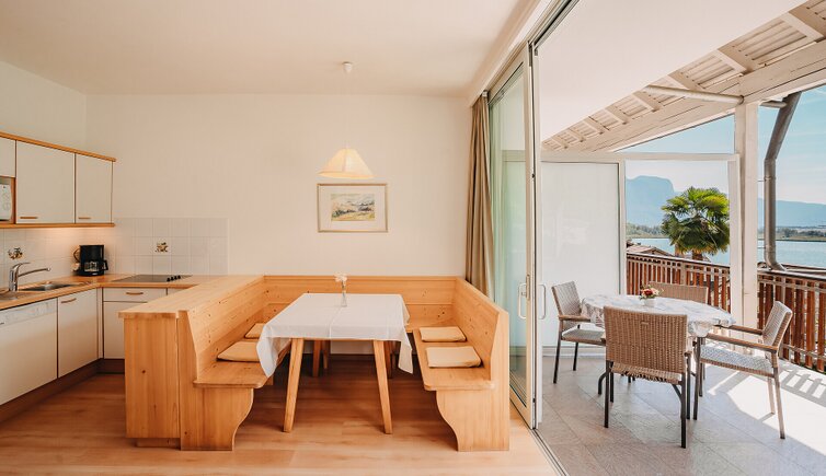 The well-equipped flats all have a terrace with a wonderful view on Lake Caldaro and the idyllic vineyards from Caldaro to Termeno. In the evening you can enjoy the last rays of sunshine there.