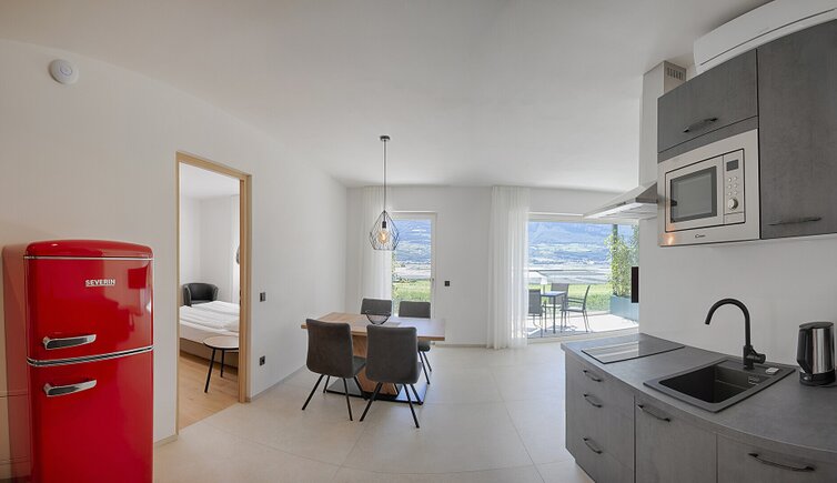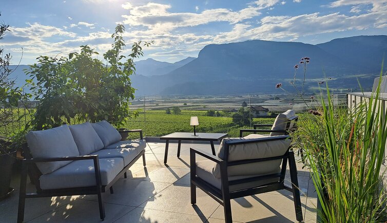Surrounded by vineyards in an extremely quiet location, you will find the Feldhof with very spacious holiday flats, open all year round with wonderful panoramic views of the surrounding mountains and the wide Adige Valley.