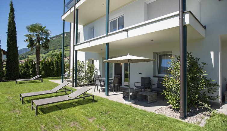 On the sunbathing lawn with palm trees and cypresses you can relax, feel good and above all enjoy the sun.