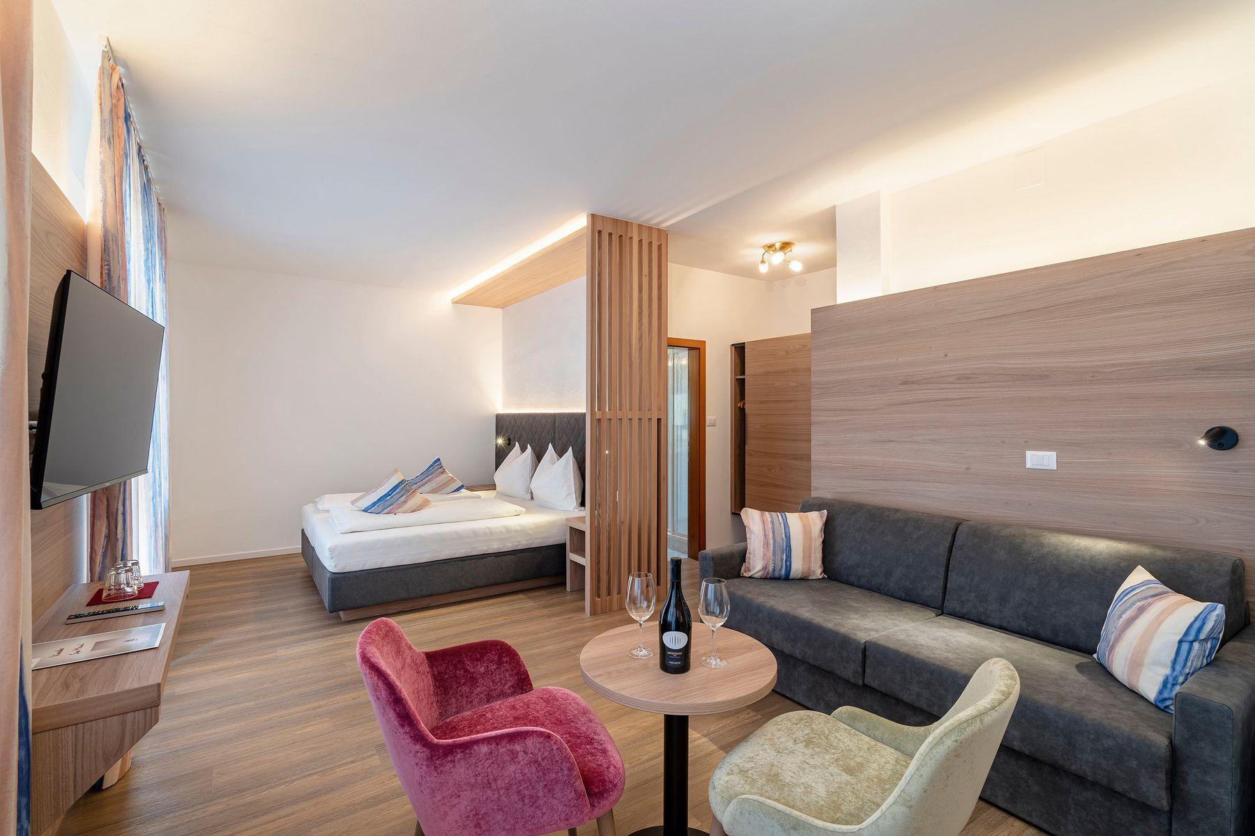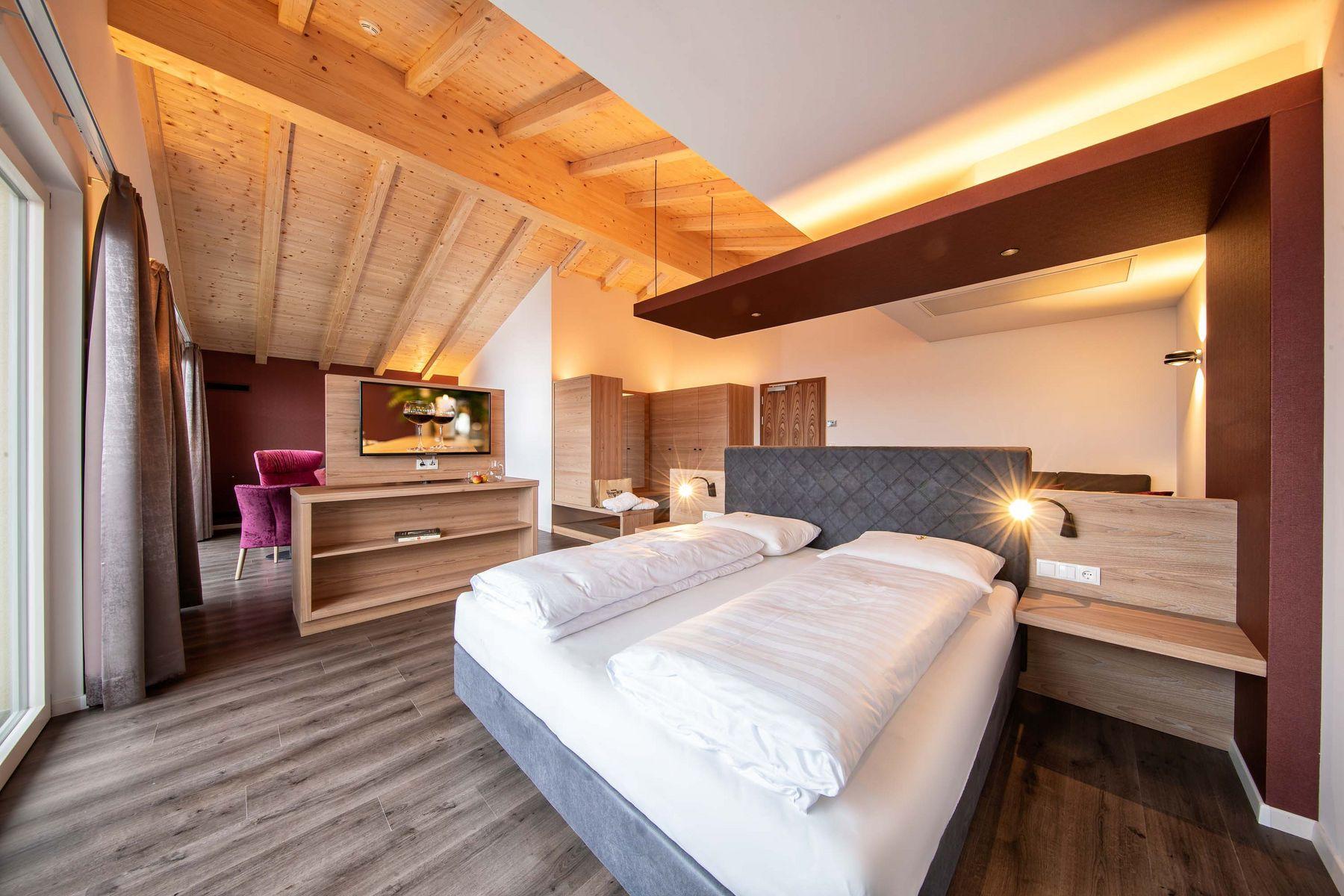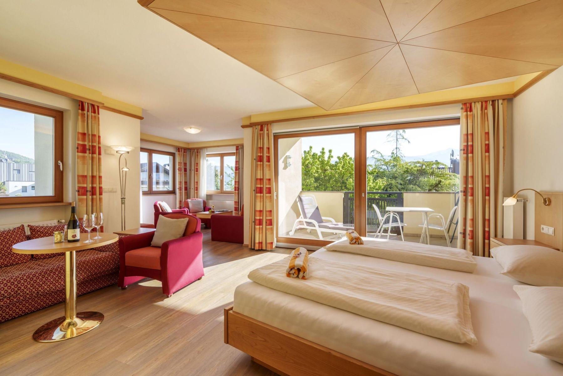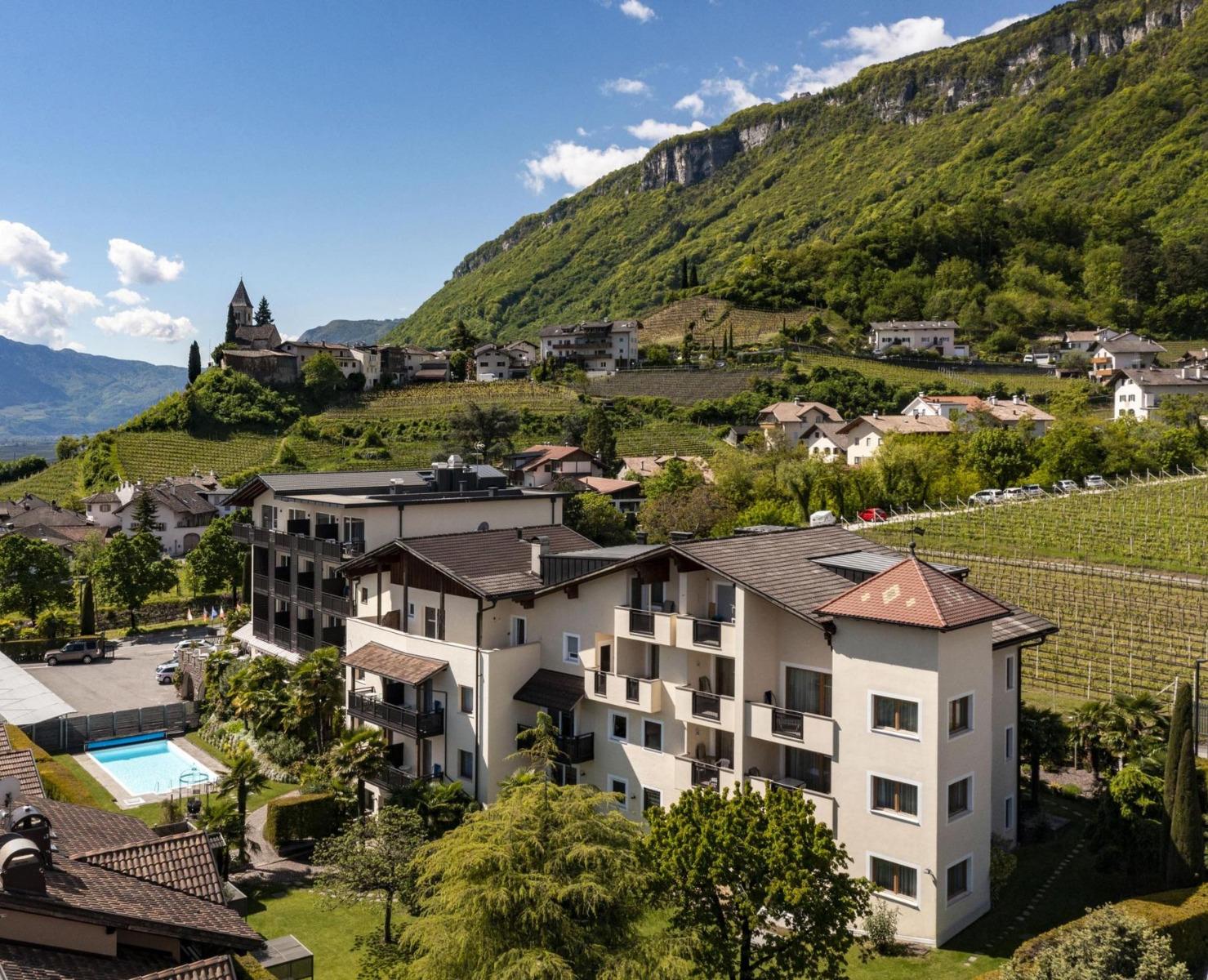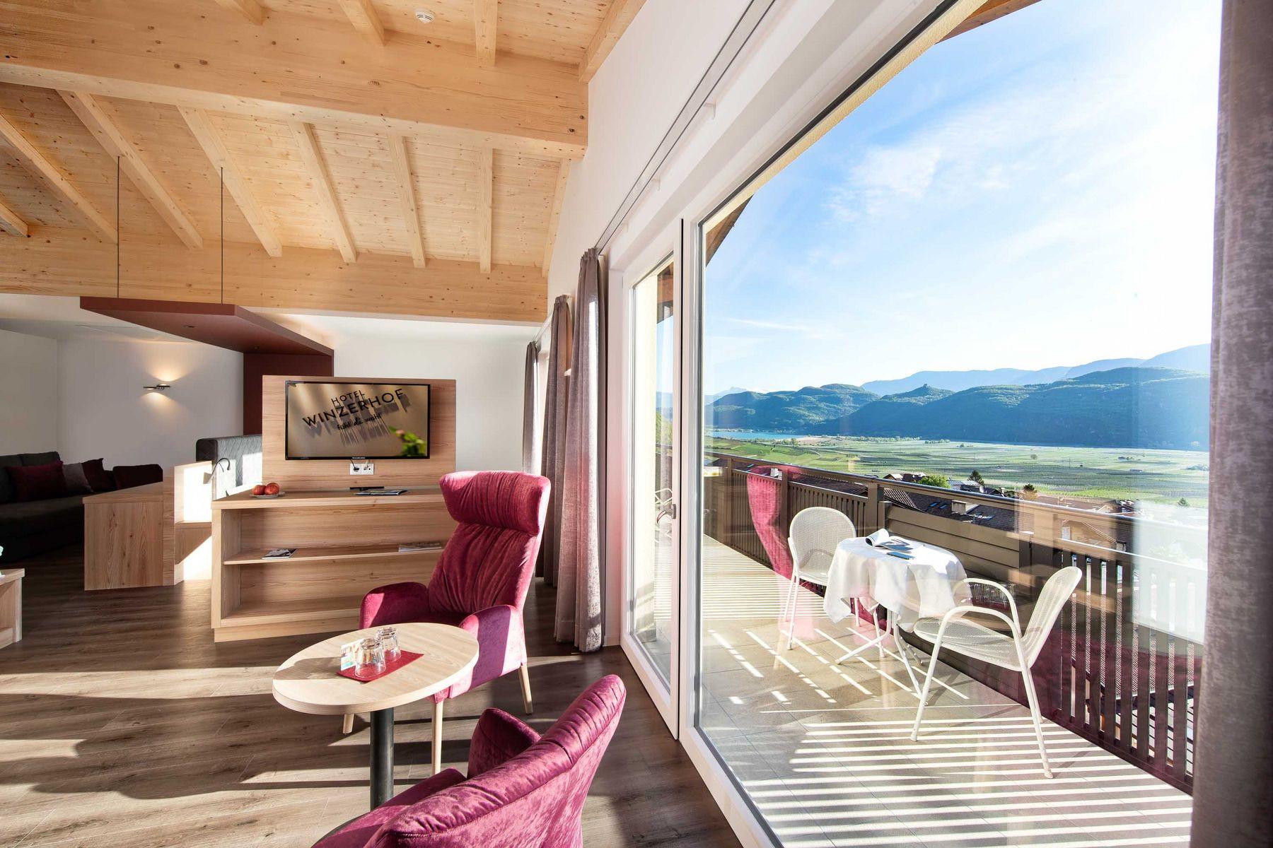 Look forward to individually designed rooms and suites featuring expansive views across orchards and mountains, stretching all the way to Lake Caldaro (Kalterer See).