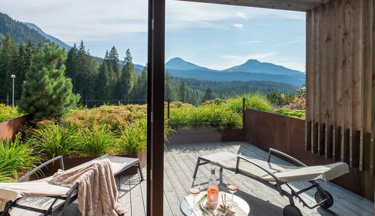 Situated on the south side of the Alps, you enjoy the magnificent view on the impressive South Tyrolean mountains and the perfect location of the hotel directly at the slope.