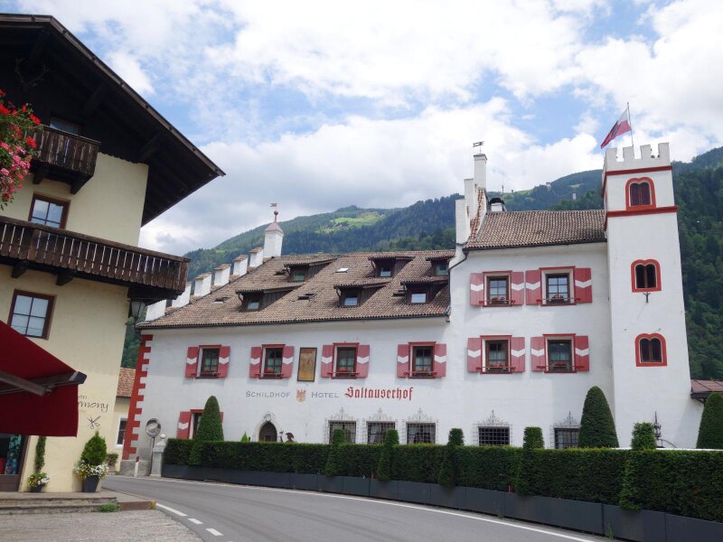 If you drive from San Leonardo towards the Upper Val Passiria, you reach the small village of Gomion. Here stands one of the eleven remaining Val Passiria Shield Farms. These buildings, which resemble estates, are several centuries old. The Shield Farm owners of the 13th and 14th centuries had to serve the counts and sovereigns as squires. In return, however, they received a special status and privileges such as fishing rights in the Passirio River and the right to bear arms.