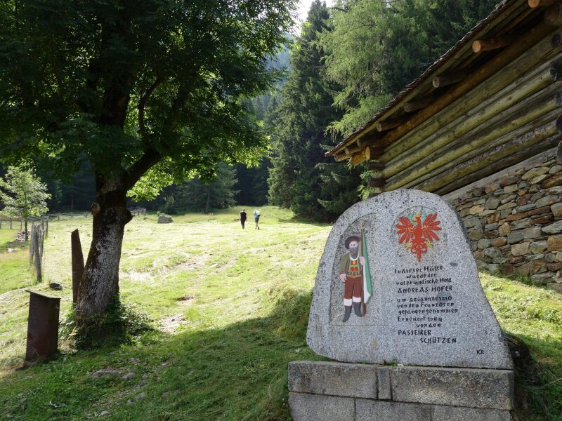Andreas Hofer hid here for two months before being betrayed by Franz Raffl for 1,500 guilders. On January 28, 1810, he was captured at the hut by French soldiers and shot shortly afterwards in Mantua. Today, information boards tell of the times of the Tyrolean Rebellion, the invasion of Bavarian-French troops and the life of the "Sandwirt", which came to an end here at the age of 42.