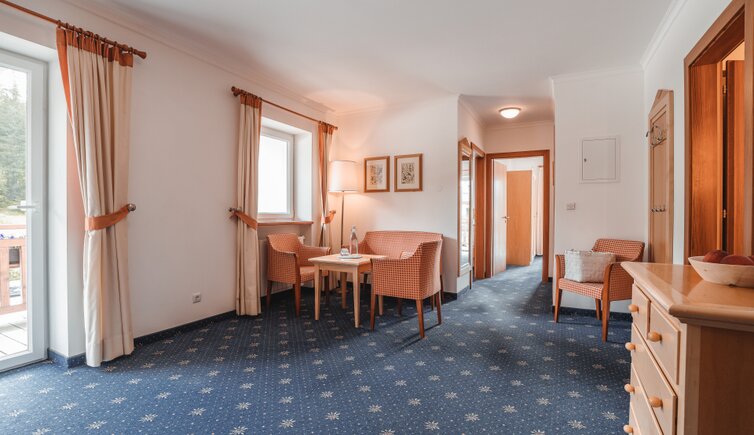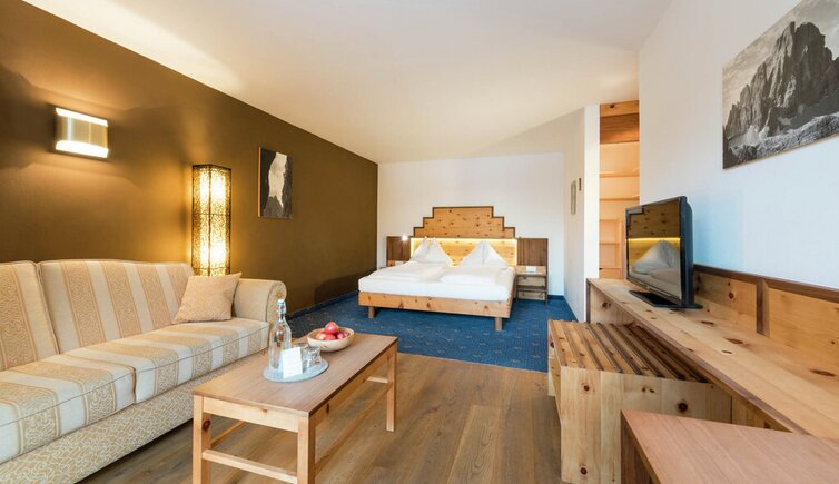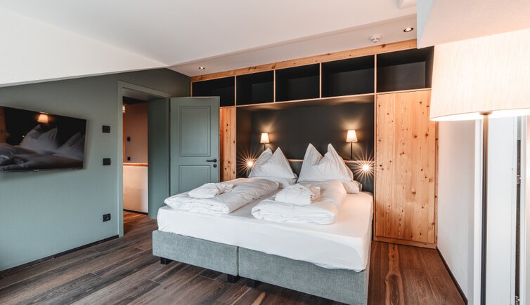 You stay in comfortable rooms or suites in alpine architectural style with cosy living character.