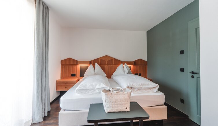 The Genießerhotel Kreuzberg / Monte Croce, an insider tip for those looking for something special, is located at 1,636 m a.s.l. in the middle of the Three Peaks Nature Park in the Dolomites.