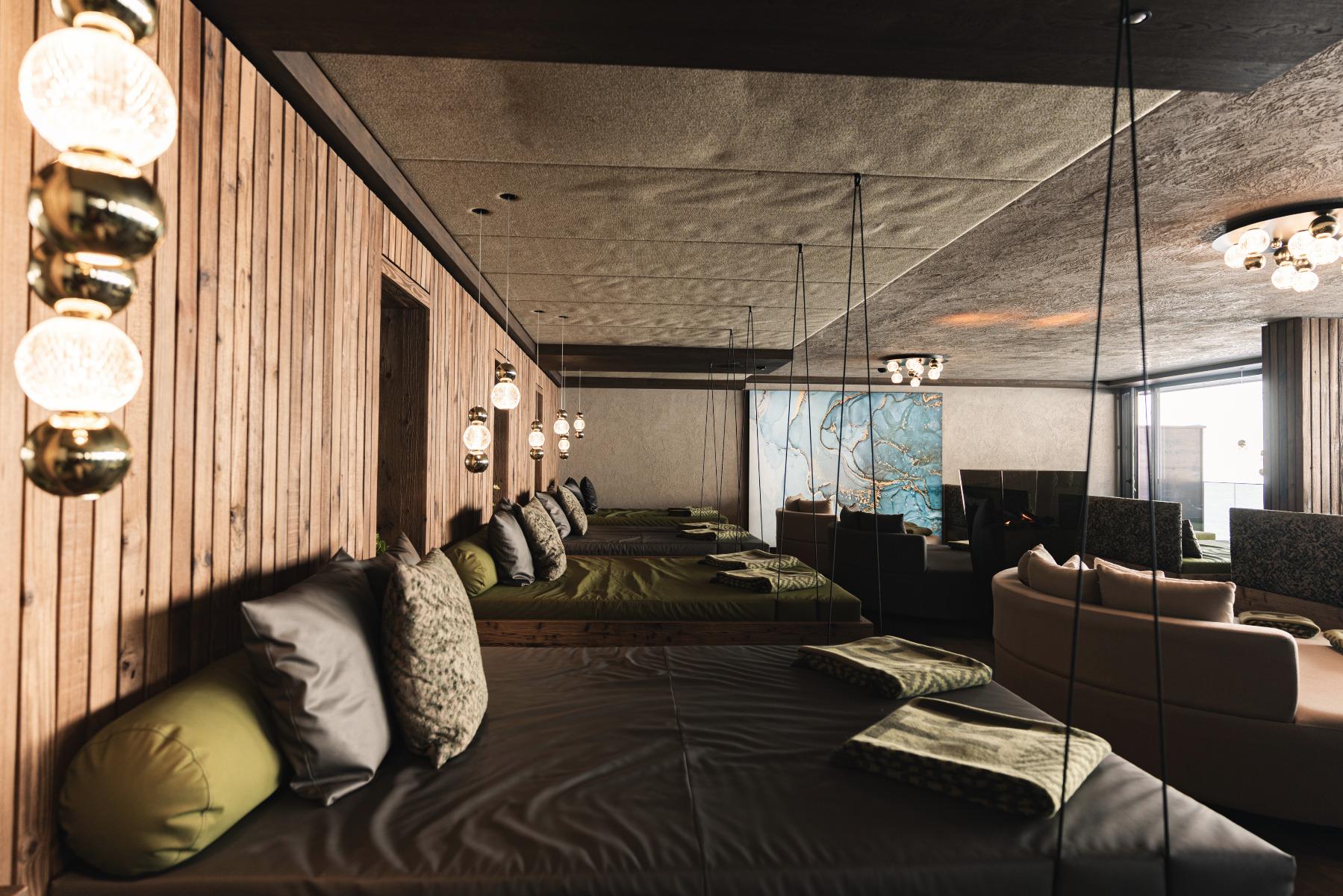 The "Torrentes" wellness area, which is on four floors, includes an adults-only area, a bio sauna, a steam bath, the event sauna with plunge pool, an outdoor area and yoga platform, an indoor and outdoor pool with relaxation room, two massage rooms and the Sunrise whirlpool.