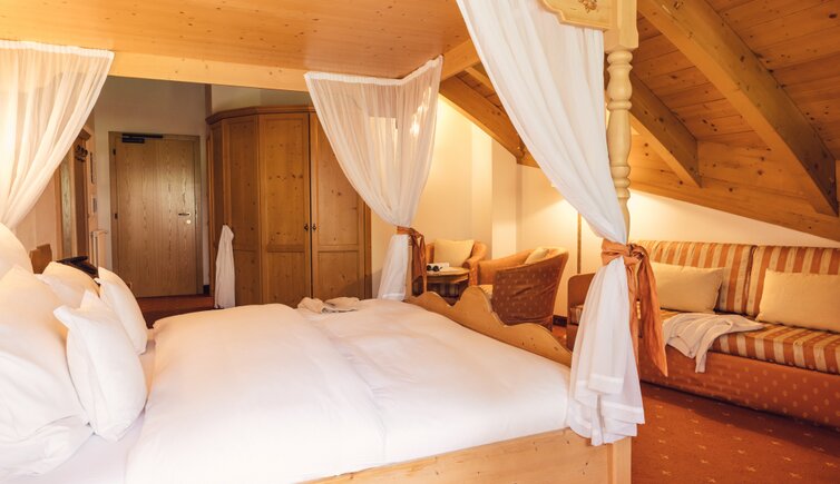 Feel good in the cosy rooms and suites, equipped with four-poster bed, tiled stove, whirlpool, and a variety of other services.