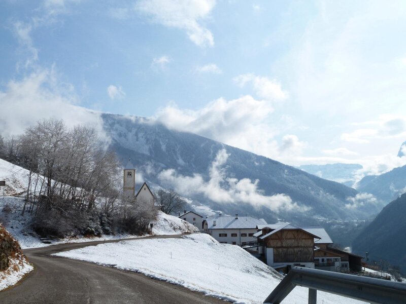 At the centre of Tanurza rises the small Church of St Bartholomew. It is the oldest sacred building in Laion, a scenically positioned building with views of the Sciliar and the Sassolungo. The Sciliar massif, with its characteristic, massive shape, is considered a symbol of South Tyrol, while the Sassolungo, or Langkofel, with its 1,000-metre-high rock face, is the highest peak in the Dolomites of Val Gardena. Romanesque elements are still visible on the church today.