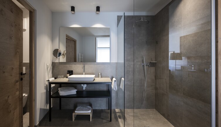 Nature outside and inside - the furnishings reflect nature with apple and willow wood, and the large window fronts convince with an incomparable view on the South Tyrolean alpine world.