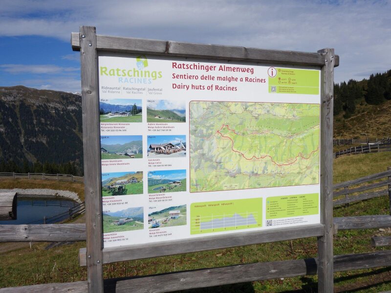 Hiking trails also wind through the landscape in the valley. The options range from a short experience on the Racines Barefoot Path along the Racines Valley Trail, which crosses the valley, to a hike up to the Giovo Ridge and the Racines mountain huts with their local delicacies.
