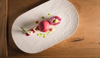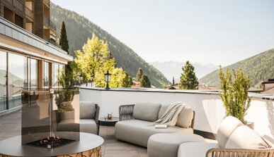The Alpine-style rooms and suites have spacious balconies and lounges and offer a magnificent view on the mountain world.