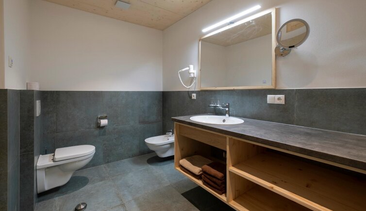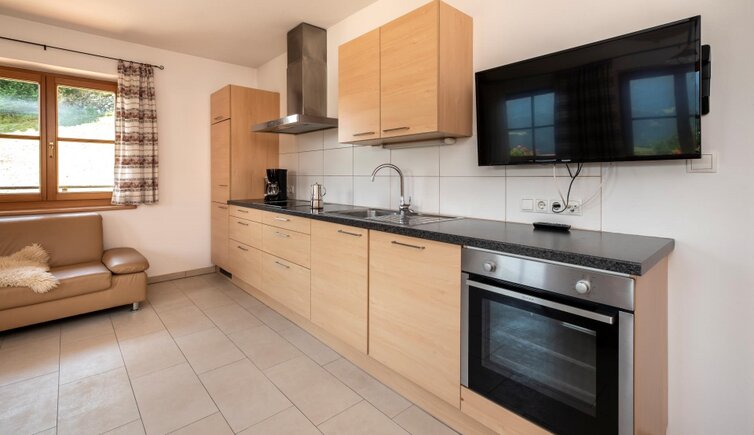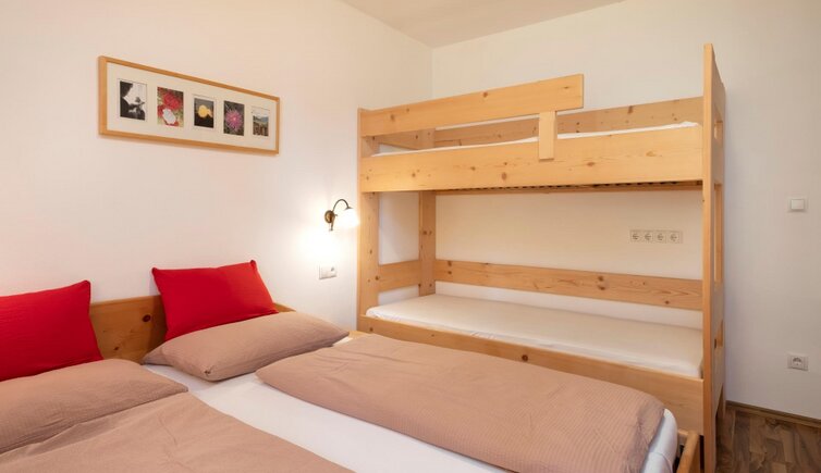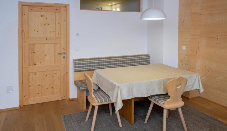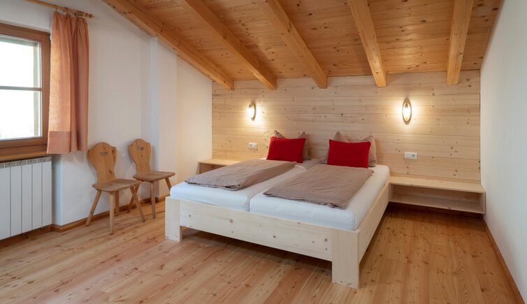 The accommodation, with its four cosy holiday apartments, is surrounded by meadows and forests. The high-quality, natural furnishings, made from spruce, Swiss pine and larch, were crafted in the farm’s own joinery. The light-filled apartments, each with a terrace or balcony, provide the perfect viewpoint for enjoying the beautiful sunsets.