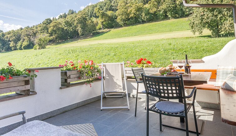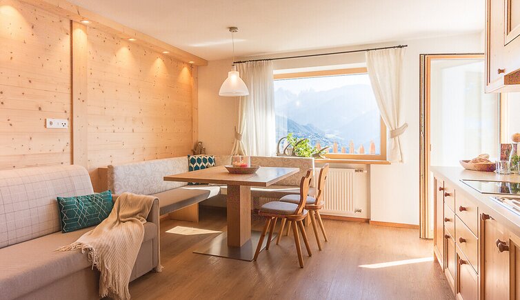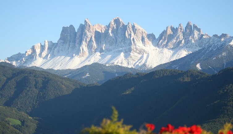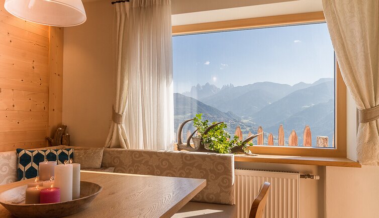 Our five apartments are located on the sunny slopes above Velturno, on the edge of a chestnut grove, and offer a beautiful panoramic view of the forests, meadows and mountains of the Isarco Valley, the beautiful Dolomites, Plose and the Odle peaks.