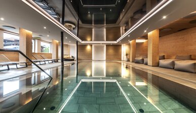 Dopo una giornata attiva, l’area benessere con piscina coperta, sauna e cabina a infrarossi offre puro relax.