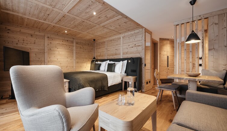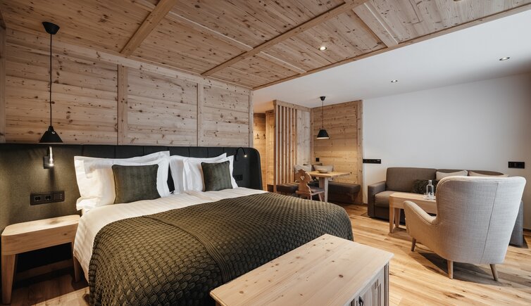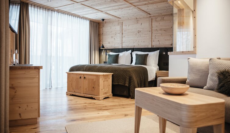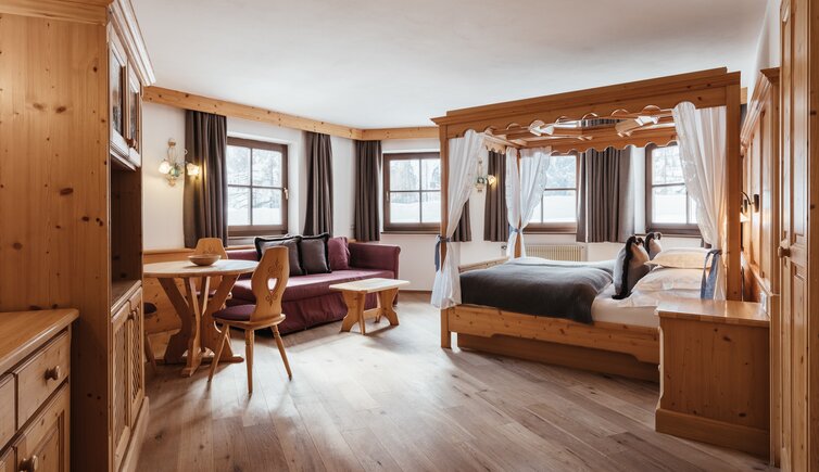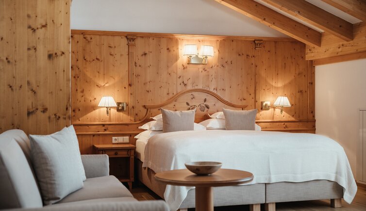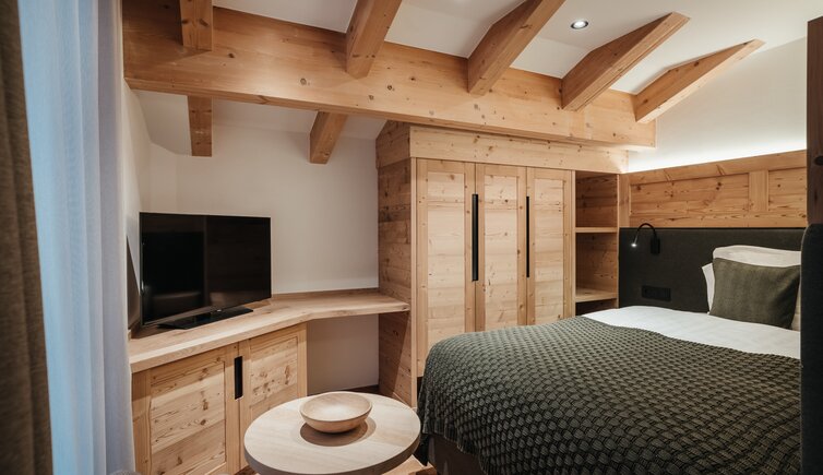 Le camere e le suite, curate ed eleganti, arredate in stile tirolese con abbondante uso di legno, ti regalano lo spazio ideale per sognare e staccare la spina.